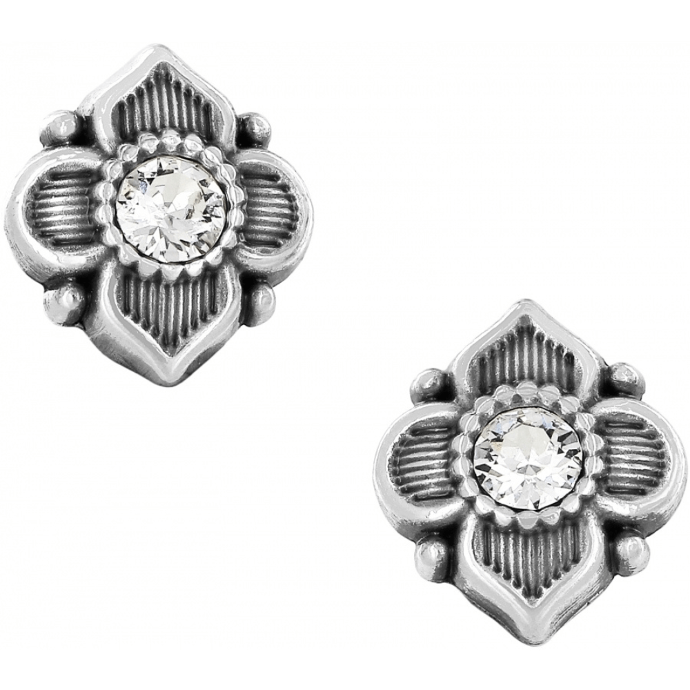 Featuring sensational fine quality crystals framed in a textured floral motif, these silver-plated post earrings are reminiscent of the opulence of a Spanish palace. Collection: Alcazar Color: Silver Type: Mini Post Width: 1/2" Material: Fine quality crystal Finish: Silver plated