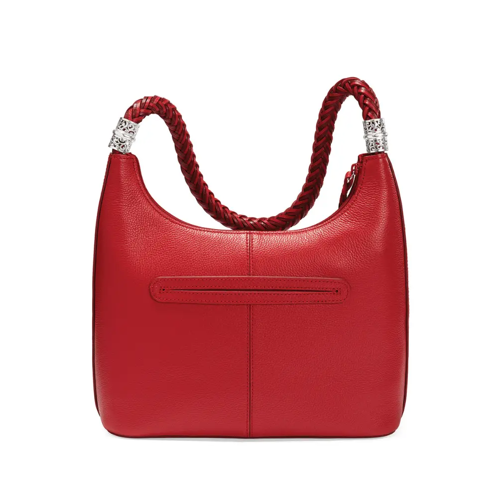 It’s easy to be bowled over by this luxe Italian leather hobo. The comfy strap reminiscent of bullwhips has a weave created with 8 sets of double strips of leather - 16 in total. It takes a lot of planning and preparation. Exterior Material: Leather, 3 external pockets Top Closure: Ziptop Interior Lining: Woven Jacquard, 4 internal pockets Dimensions: Width 11 1/2", Height 8 1/2", Depth 4 1/8", Strap 12 1/2" Weight: 2.87 lbs Feature: Key holder