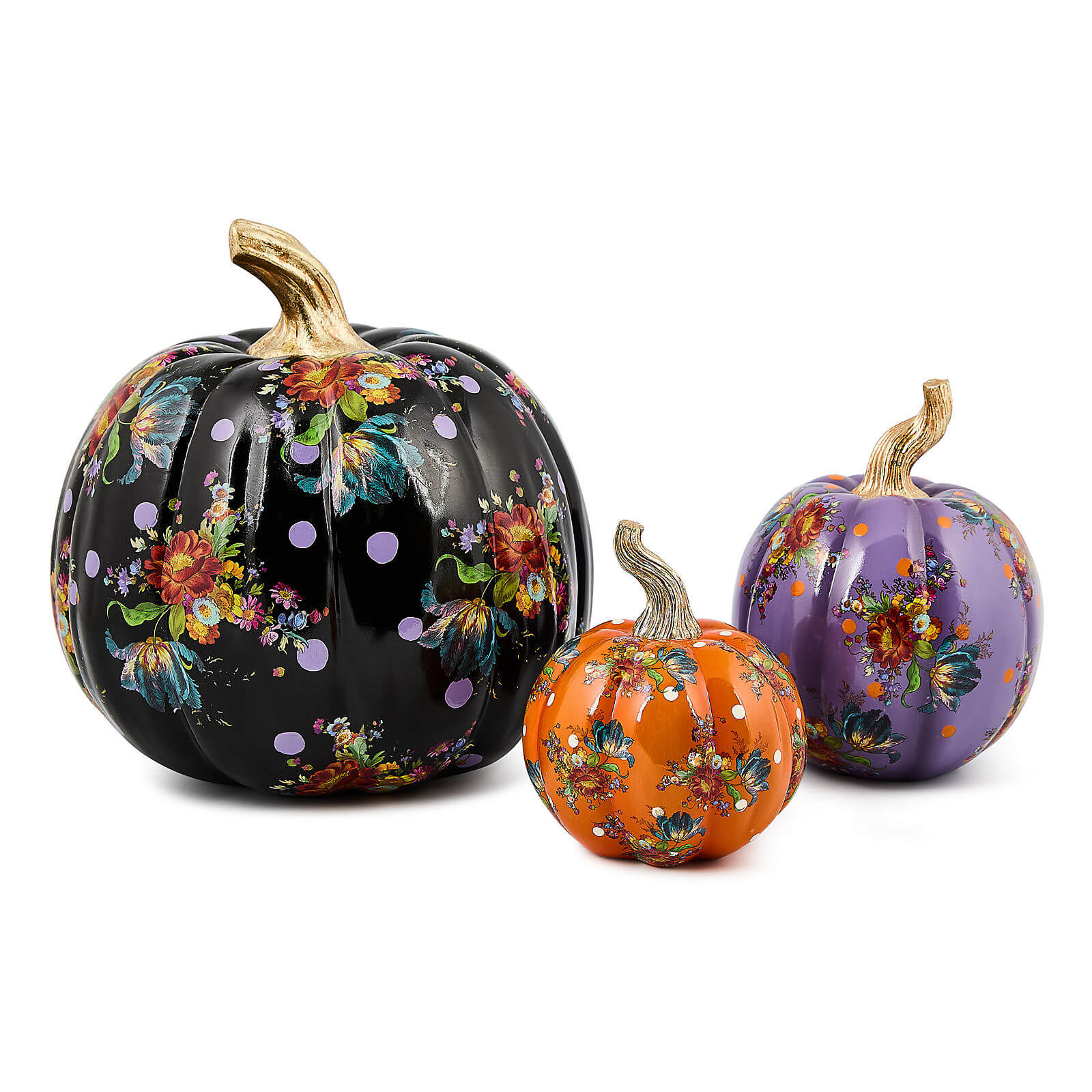 Take your pick from our truly unique pumpkin patch with the Black Flower Market Medium Pumpkin. Decorated in floral motifs, this decorative gourd is sure to be a favorite in any autumnal display.
