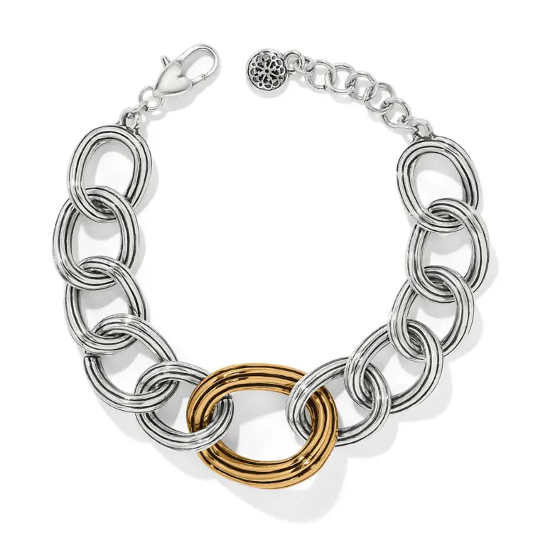 Inspired by the twisted columns of ancient Rome, each link is forged with dimensional depth—bold yet refined, fluid yet structural. The interplay of silver and gold creates a striking contrast, emphasizing the chain’s dynamic movement and timeless silhouette. Eterna speaks to continuity through form, balancing heritage with contemporary edge. Collection: Ferrara Color: Silver-Gold Closure: Lobster Claw Finish: Two Tone