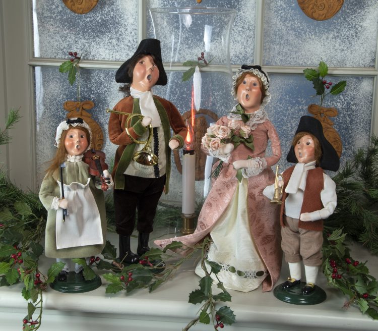 This colonial family enjoys a day of Christmas shopping at the Merchants Square.