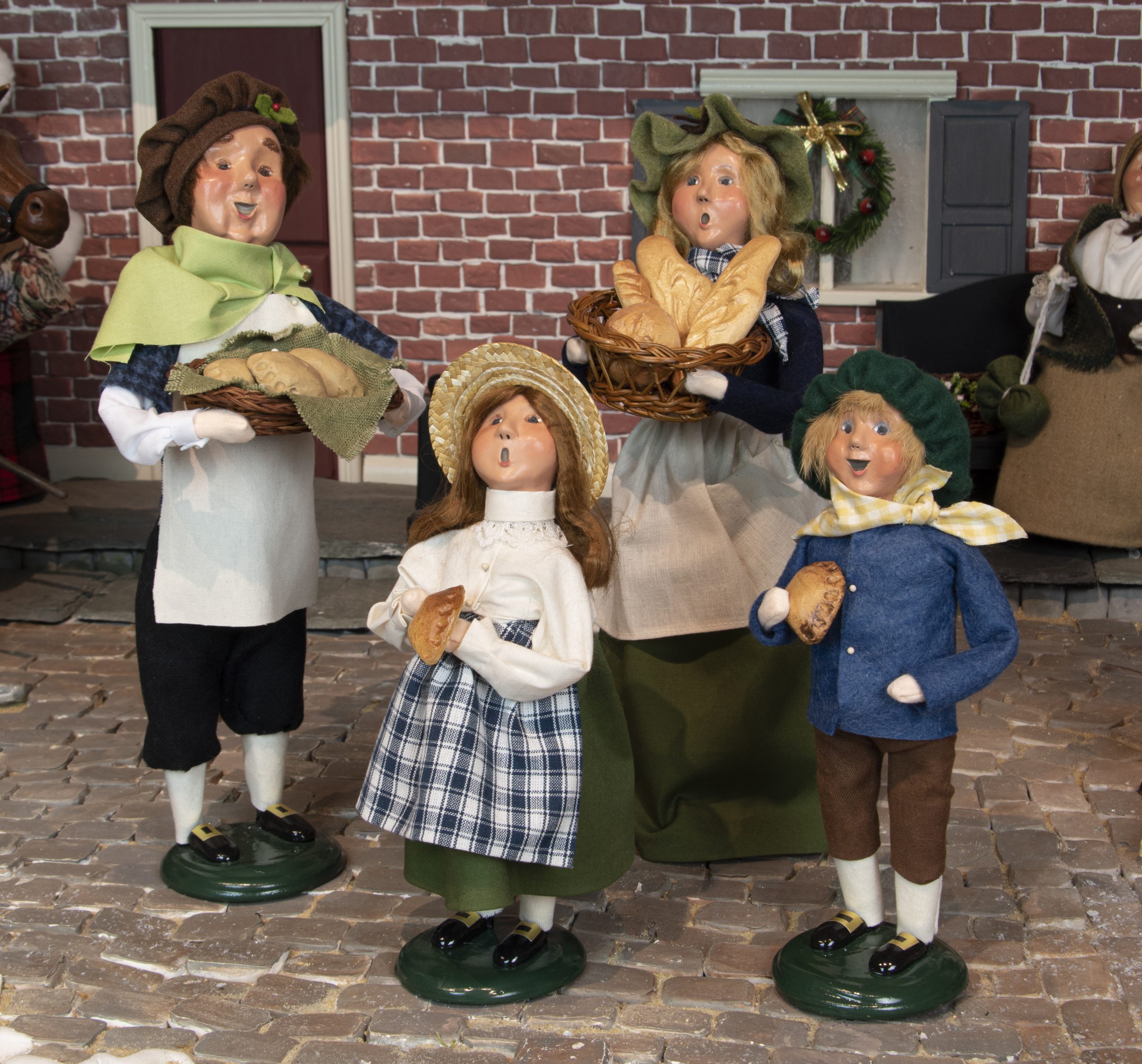 The Cries of London collection embodies the street vendors of London known for the vocal selling of their wares. Also known as costermongers, these vendors sold everything from fresh fish and meat to produce. The 2022 Cries of London series features a Cry with Meat Pies accompanied by a Woman Selling Bread and children with pies.