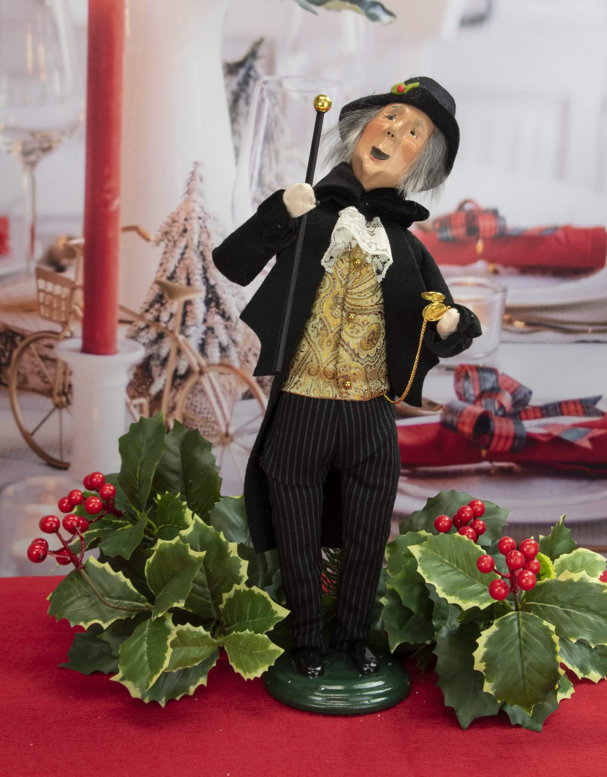 This handcrafted Byers’ Choice Happy Scrooge Caroler is festive and perfect for the Christmas holiday season. Part of the A Christmas Carol Collection, he is dressed in his Christmas morning best, standing in a triumphant pose, ready to embrace his renewed life with joy and generosity. This figure captures the spirit of transformation at the heart of A Christmas Carol. Awakened with gratitude and cheer, Scrooge is no longer the miser of Christmas Eve, but a man filled with hope and goodwill. A joyful reminder that it's never too late to change, he brings warmth and inspiration to every holiday display.
