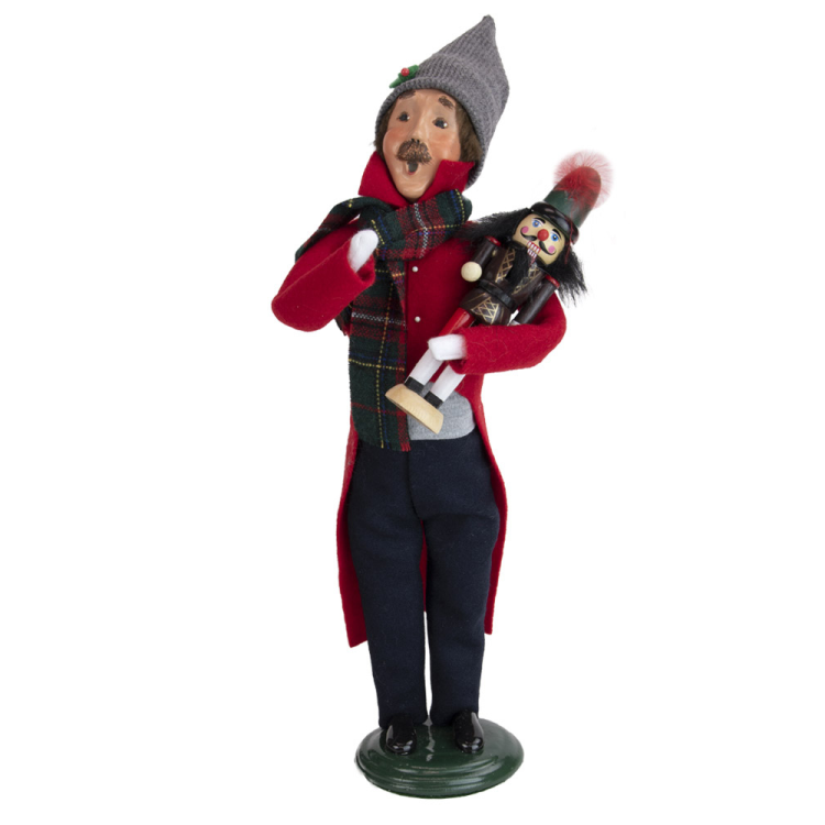 Byers Choice - Nutcracker Man 2023 Nutcrackers are believed to have originated in the Erzgebirge region of Germany about 300 years ago. An artisan carved a wooden soldier with a movable mouth to symbolically crack the “hard nut” of the economic times. The figure quickly became popular throughout the region, Germany, and the world. Size: 13" Inches