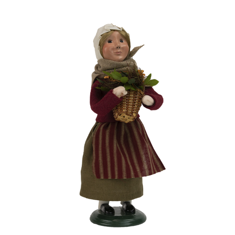 Byers Choice - Pilgrim Girl Pay homage to the first Thanksgiving while adding a touch of harvest to your home this Autumn. In 1621, the Plymouth colonists and Wampanoag Indians shared an autumn harvest feast which is acknowledged today as one of the first Thanksgiving celebrations in the colonies. Although this feast is considered by many to be the very first Thanksgiving celebration, it was actually in keeping with a long tradition of celebrating the harvest and giving thanks for a successful bounty of crops. Size: 10 Inches