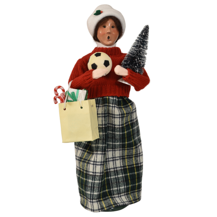 This handcrafted Byers’ Choice Shopping Woman Caroler is festive and perfect for Christmas decorating. Bundled in a warm winter sweater and carrying an assortment of holiday purchases, she adds cheerful charm to Christmas scenes.