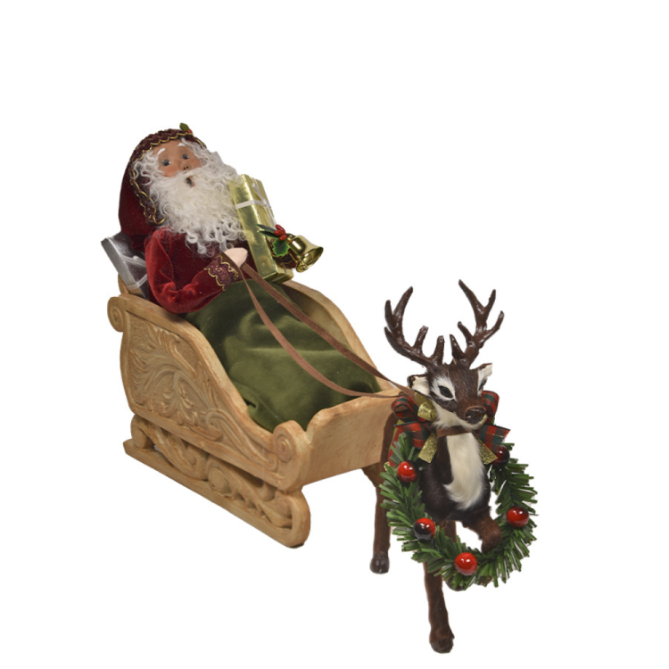 Capture the magic of Santa’s Christmas Eve journey with his elegant sleigh and reindeer duo. Inspired by the classic “’Twas the Night Before Christmas,” Santa rides in a carved wooden sleigh, delivering joy and wonder to homes around the world—a timeless tribute to the spirit of giving.