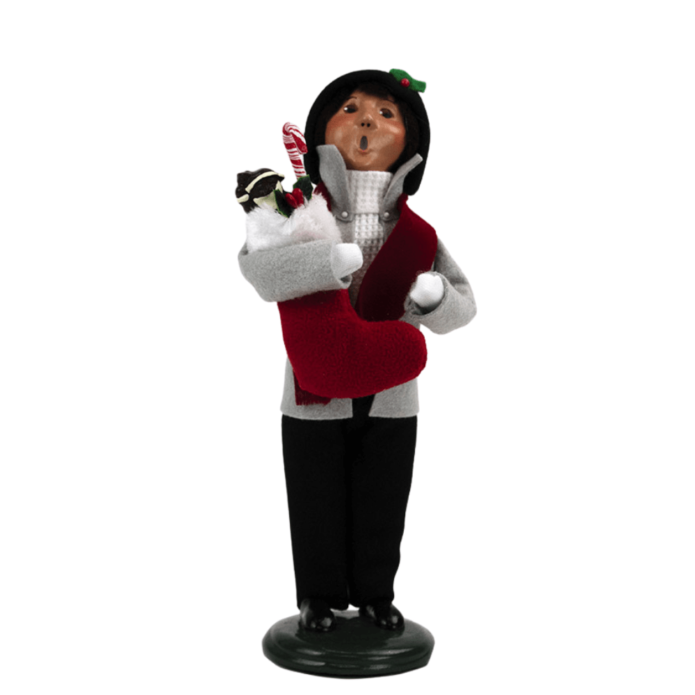 There’s probably not a single aroma that says “Christmas” more than the smell of fresh gingerbread baking in the oven. The ginger root, whose intense flavor is at the heart of gingerbread, was introduced to Europeans in the eleventh century. When the English began adding breadcrumbs to mixtures of boiled ginger and sugar, the Western world saw its first forerunners of the gingerbread we know today. Gingerbread adorns this happy little family, as they finish up their Christmas Eve shopping before heading home to prepare for the festivities ahead.