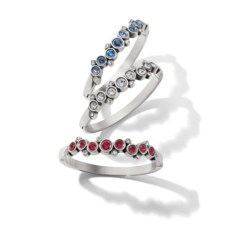 Collection: Constella Color: Silver-Red Closure: Hinged Width: 1/2" Diameter: 2 1/4" Material: Fine quality crystals Finish: Silver plated