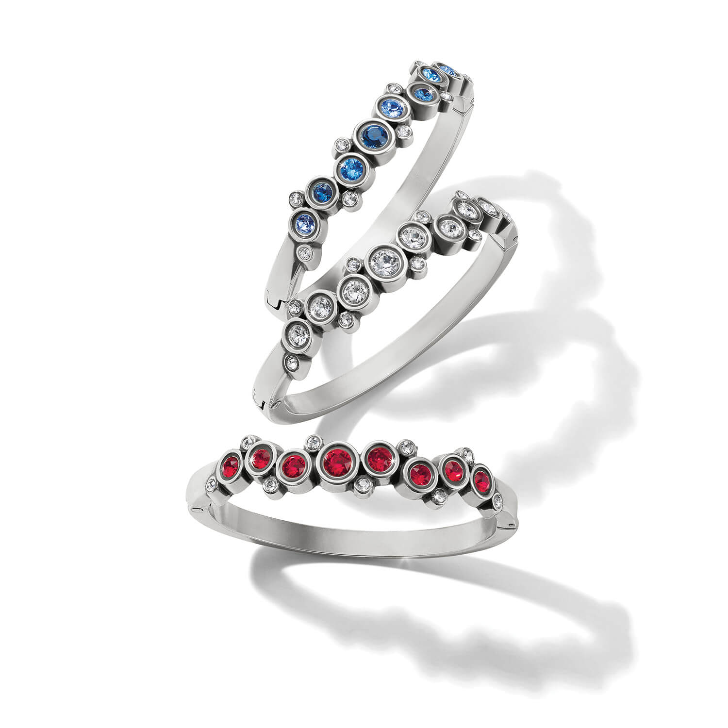 Collection: Constella Color: Silver-Red Closure: Hinged Width: 1/2" Diameter: 2 1/4" Material: Fine quality crystals Finish: Silver plated