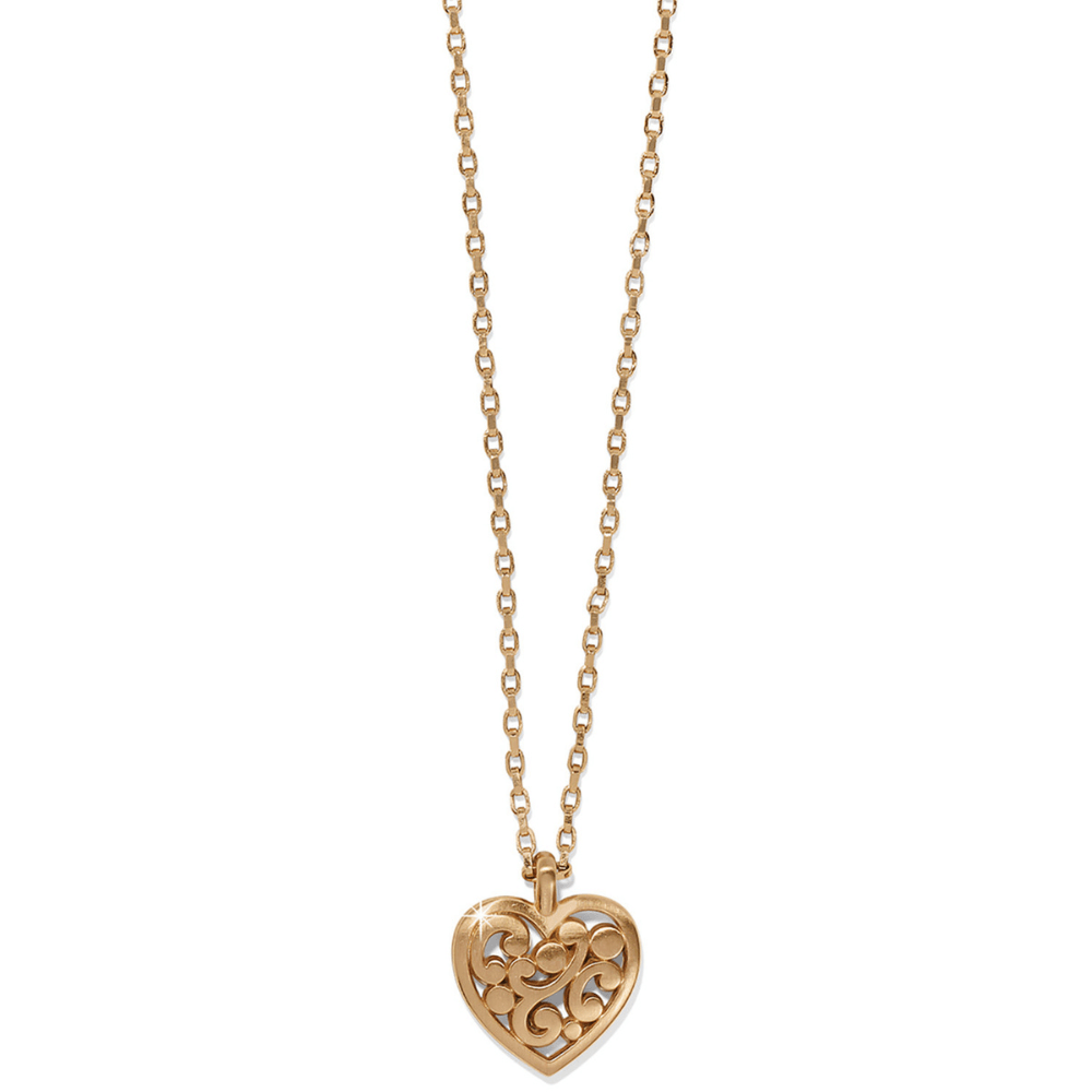 This heart motif pedant necklace inspired by jewelry artisans of Taxco, Mexico, is designed to layer and mix with the rest of the Contempo Collections. Closure: Lobster Claw Finish: Gold plated