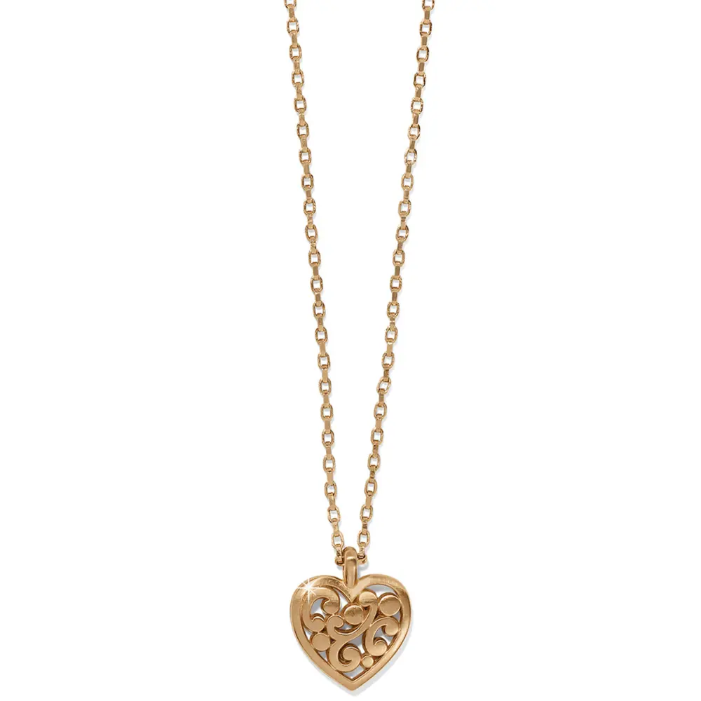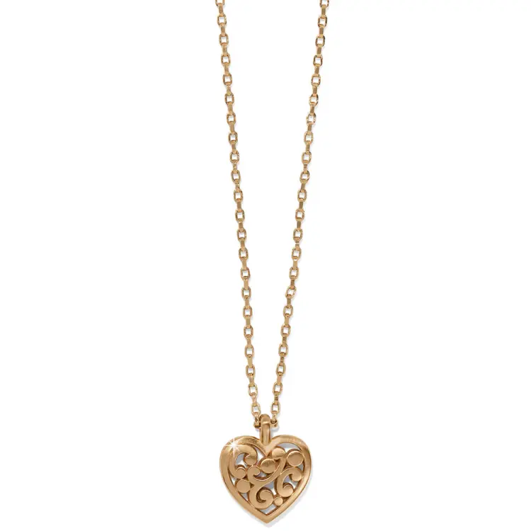 This heart motif pedant necklace inspired by jewelry artisans of Taxco, Mexico, is designed to layer and mix with the rest of the Contempo Collections. Closure: Lobster Claw Finish: Gold plated
