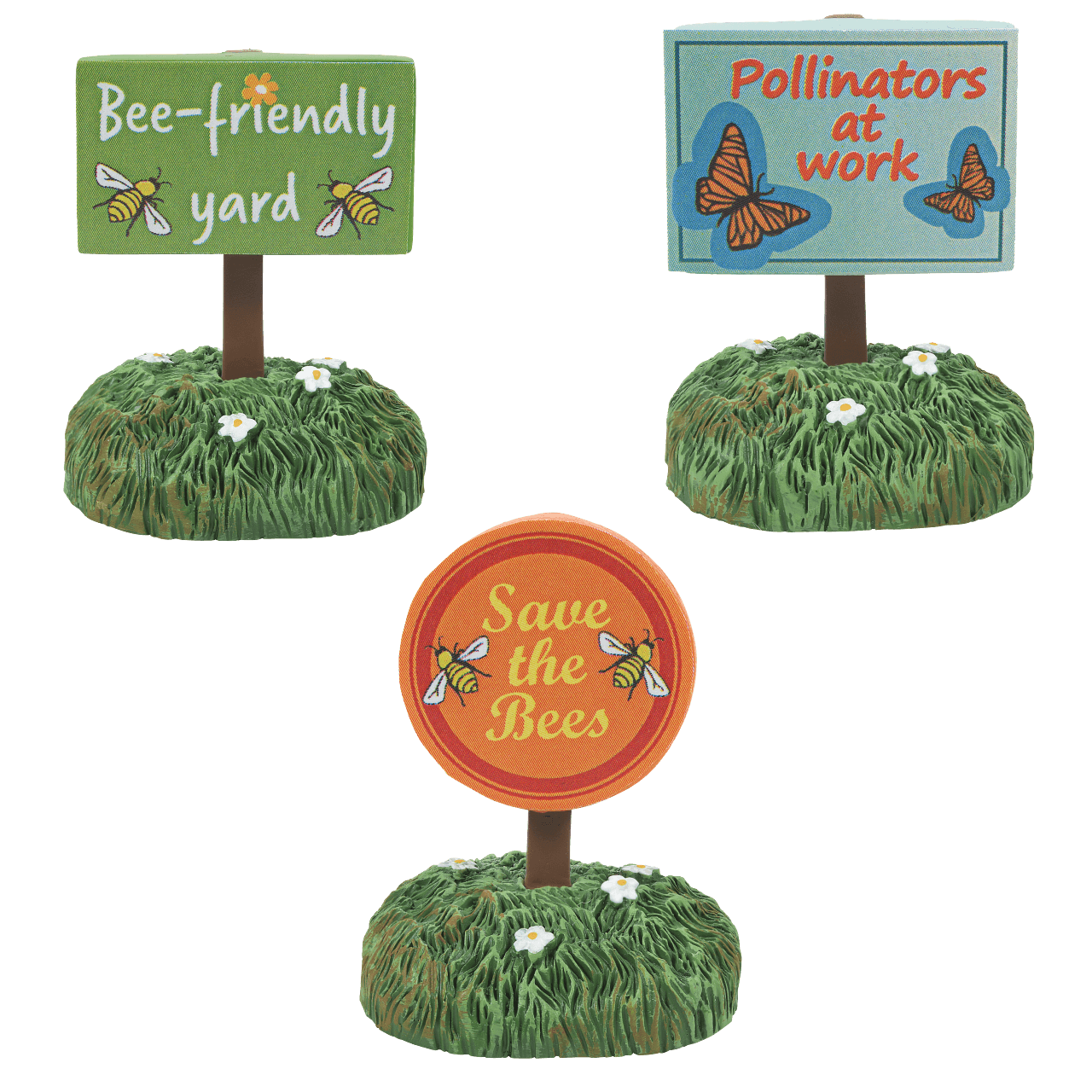 No one has taught the bees to read, but these cheerful garden signs add a bit of whimsy to the bee scene. Set of 3. Introduction: January 2022