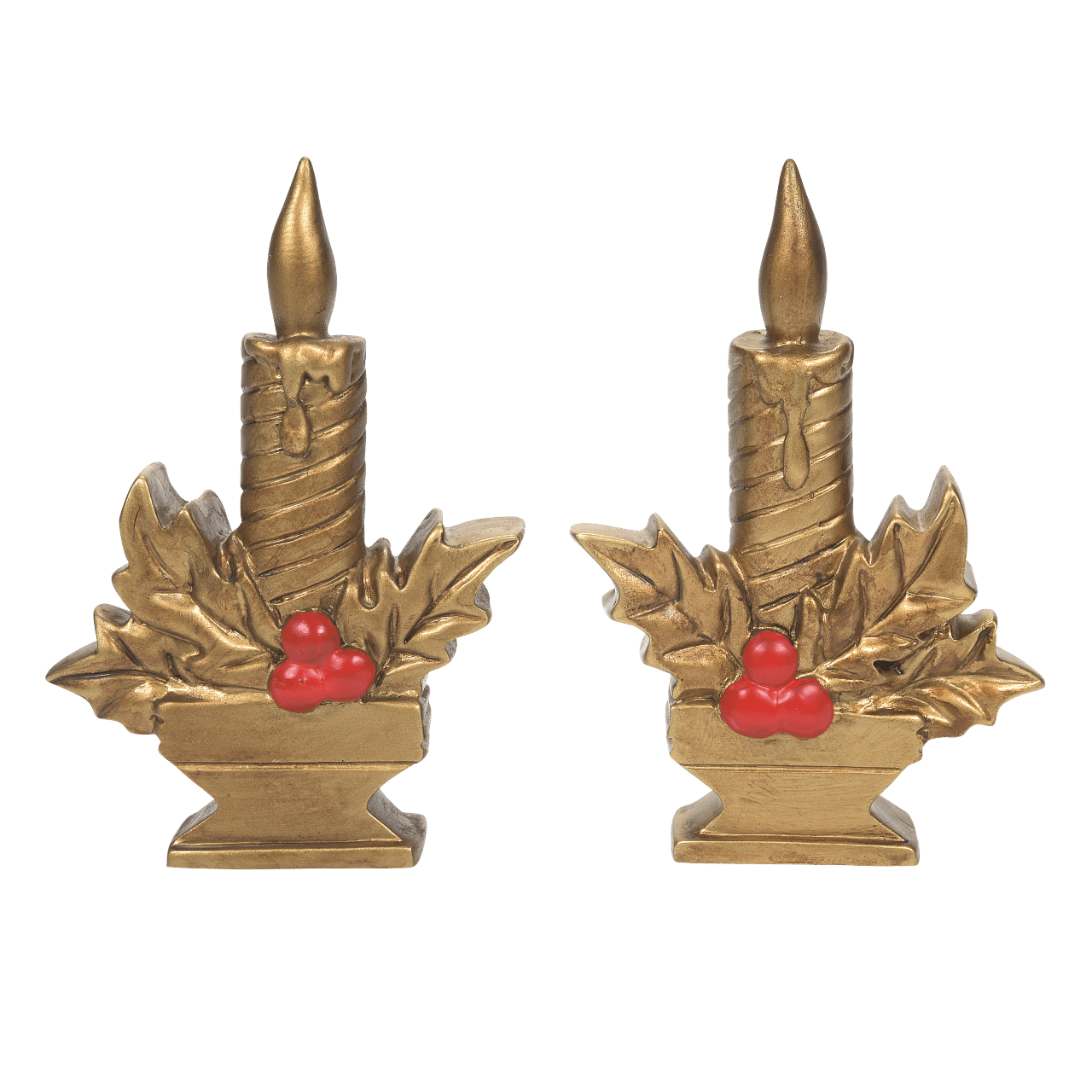 Department 56 - Candle Greetings Set of 2 Introduction: January 2022 Village - Village Accessories Description: A pair of gilded candles, lit and ready to light up your Village display. Lit using the included battery box, but can be converted using the AC/DC adapter 56.55026. Size: 3.15 in H x 0.6 in W x 2.165 in L Materials: Stone Resin, Polyresin