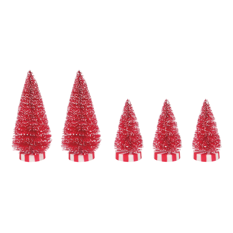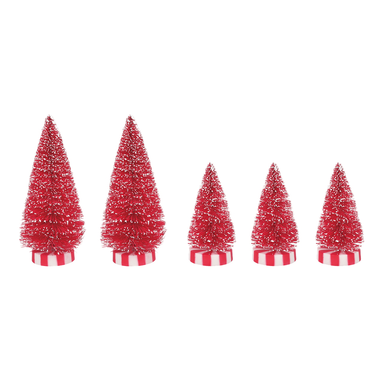 Department 56 - Candy Cane Christmas Base Trees, Set of 5 Introduction: January 2022 Village - Village Accessories Description: A candy cane forest of five red sisals, three that are three inches tall and two that stand six inches tall, will be a great punch of color against the frosty snows of a winter scene. Each come with red and white striped candy looking bases. Size: 6 in H x 3 in W x 3 in L Materials: Sisal, Polyresin, Iron