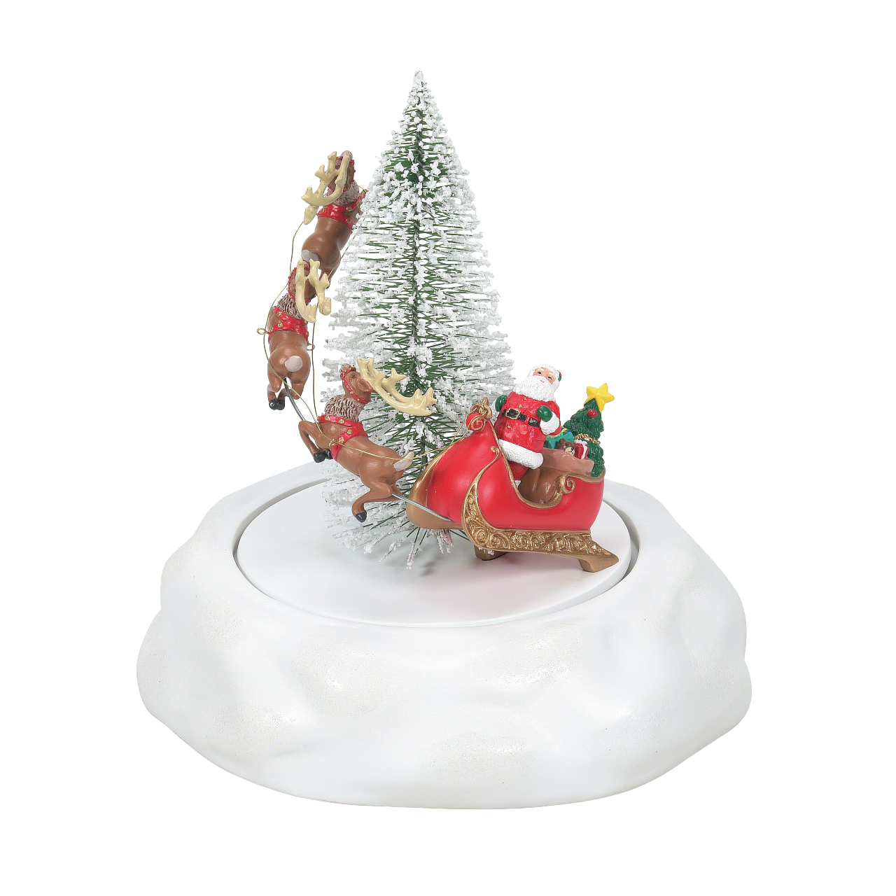 Department 56 - Animated Christmas Eve Sleigh Introduction: January 2022 Village - Village Accessories Description: With a smaller footprint, this beautifully detailed animated piece features Santa and his reindeer taking off for his long ride on Christmas Eve delivering presents to good little children around the world. Size: 9.06 in H x 8.46 in W x 8.46 in L Materials: AC Adapter, Polyresin, Plastic, Electric Motor, Iron