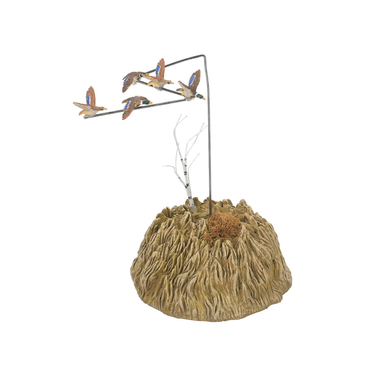 Department 56 - Going Home for the Holidays Introduction: January 2022 Village - Village Accessories Description: Flying in a traditional V-shaped pattern these birds are preparing to migrate to the south for winter. The piece is animated. Size: 9 in H x 5 in W x 5 in L Materials: Stone, Metal, Polyresin, Battery Box