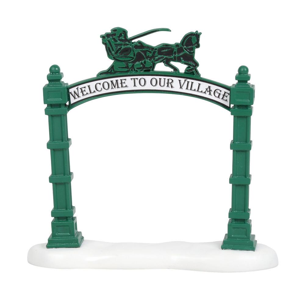 Department 56 - Village Archway Introduction: January 2019 Village - Christmas Village Accessories An iron gate topped with a horse-drawn sleigh. The perfect way to welcome visitors to your Snow Village. Can be personalized for customers. Size: 4.5 in H x 1.5 in W x 5.25 in L
