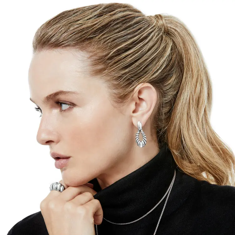 Collection: Ferrara Color: Silver Type: Post with flat disc back Width: 9/16" Drop: 7/8" Finish: Silver plated Product #: JA9263