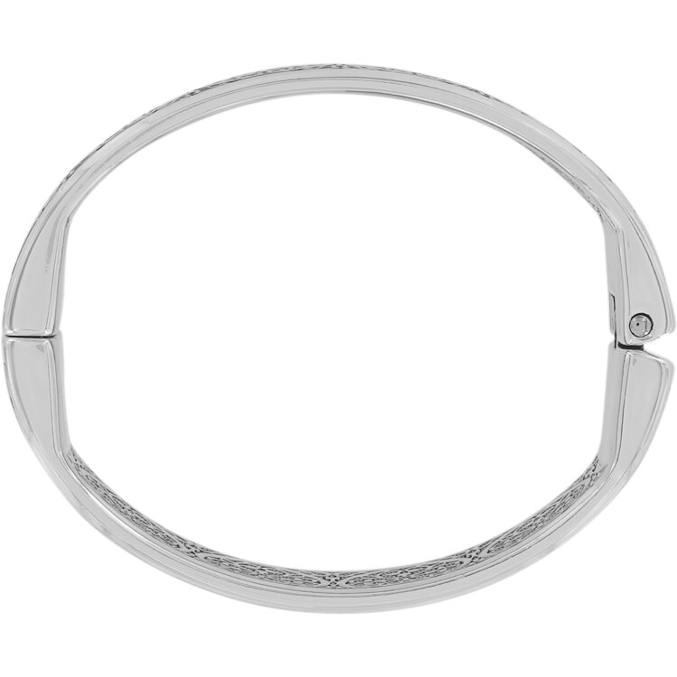 Inspired by rose windows in Europe's cathedrals, the breathtaking Ferrara motif has been incorporated into the design along this silver-plate hinged bangle. Eye-catchingly gorgeous, whether on its own or stacked, this bracelet is truly a must-have. Collection: Ferrara Color: Silver Closure: Magnetic hinged Finish: Silver plated