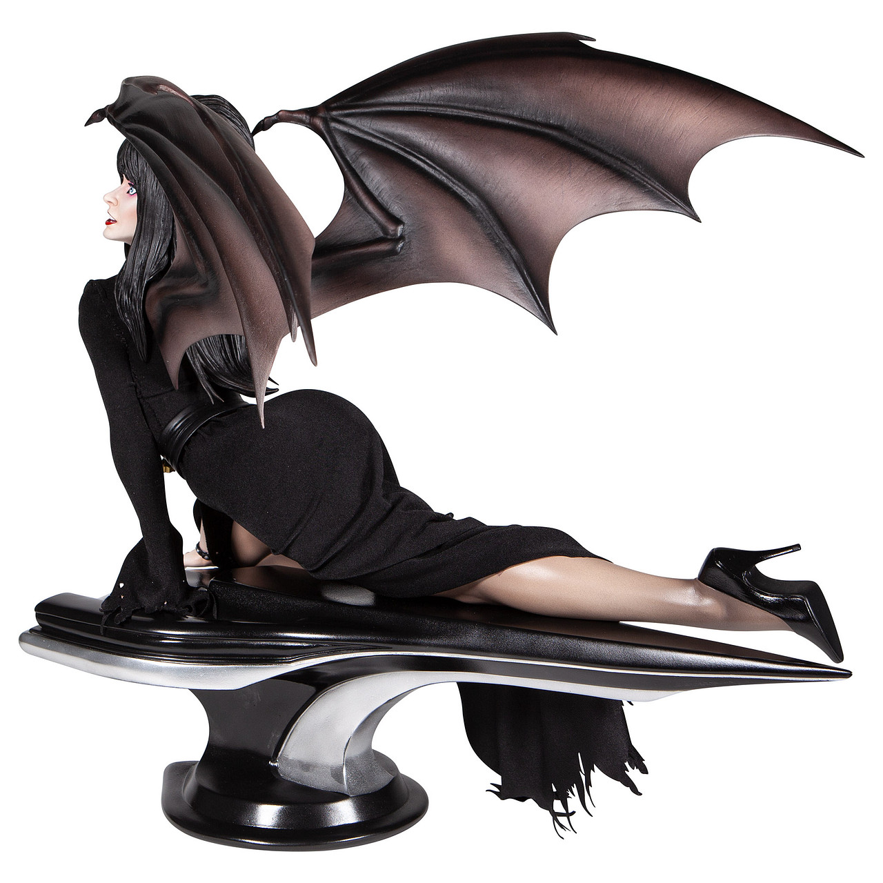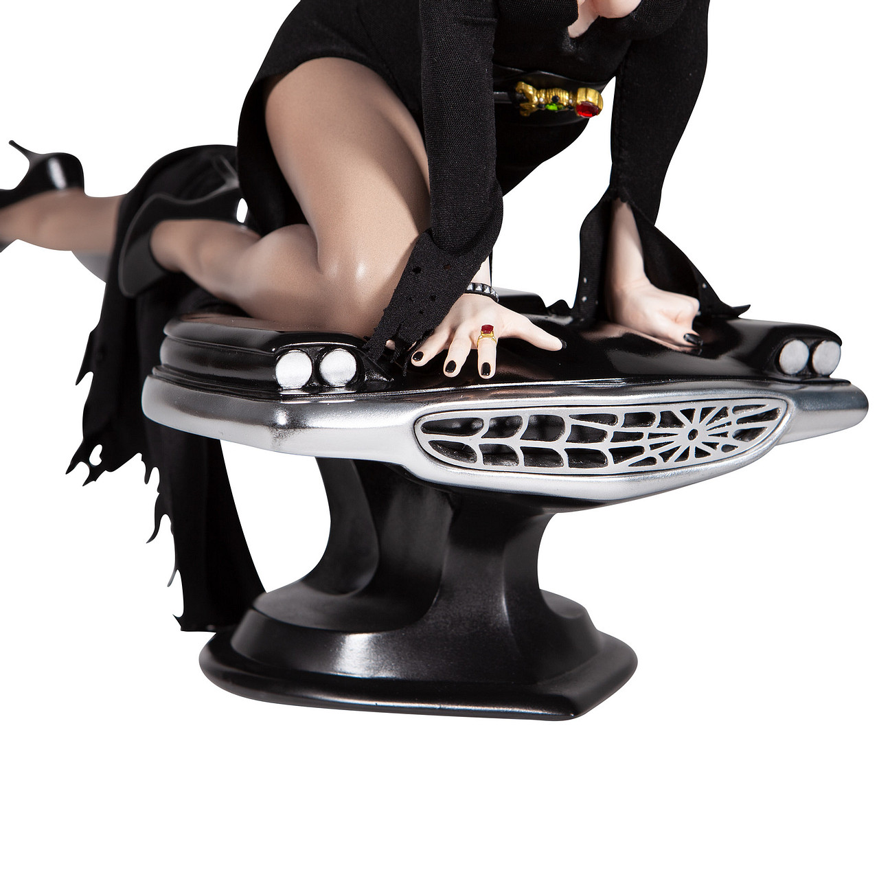 Grand Jester Studios - Elvira Quarter Scale Statue Grand Jester Studios presents Elvira, Mistress of the Dark, in this 1/4 scale deluxe format statue. Inspired by Elvira's Macabre Mobile hood ornament, Elvira comes to life in this mixed media sculpture. Numbered Limited Edition 2,500 World wide.