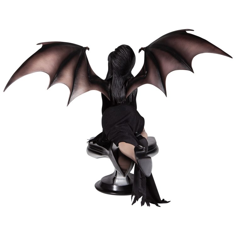- Bat-like wings extend from Elvira’s shoulders (detachable)