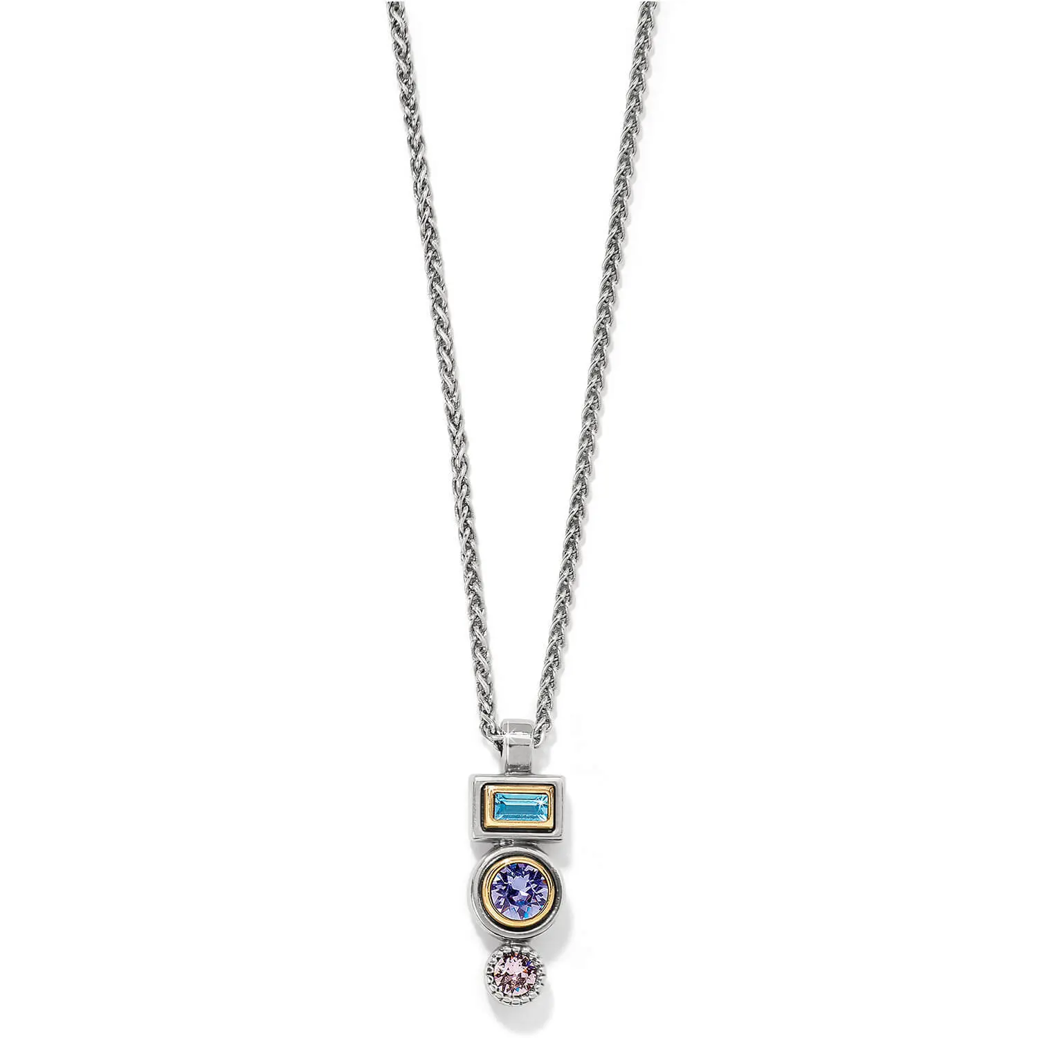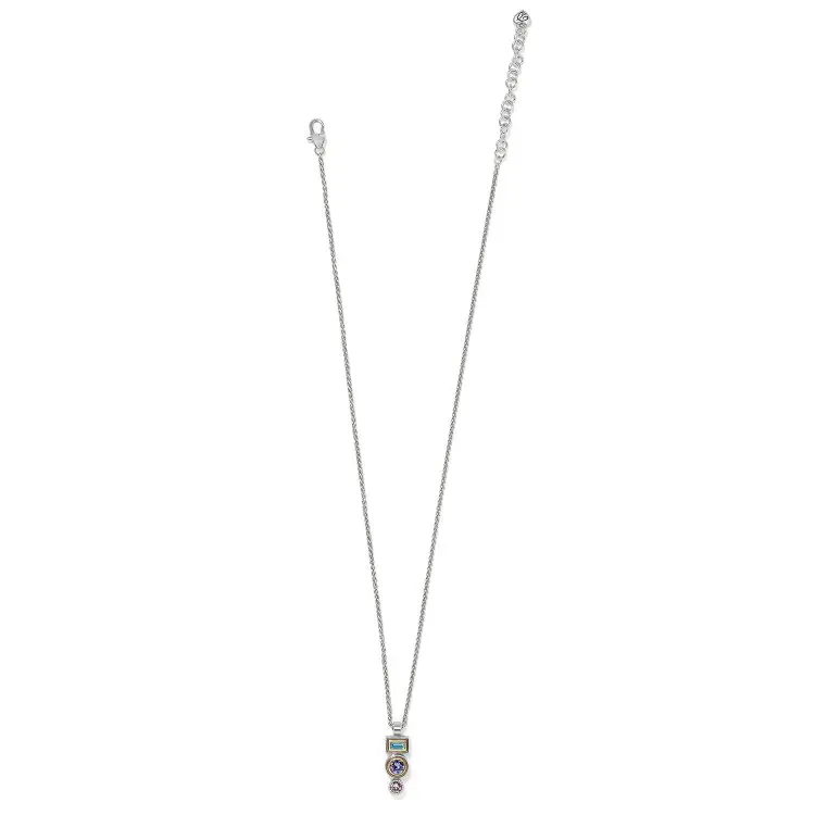 Sculpting and the addition of gold polished accents gives this Halo Drop Necklace an artisan feel. The crystal colors of purples and blues tie back to the collection’s inspiration – planets and stars in the night sky.