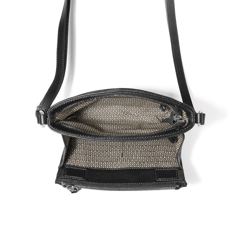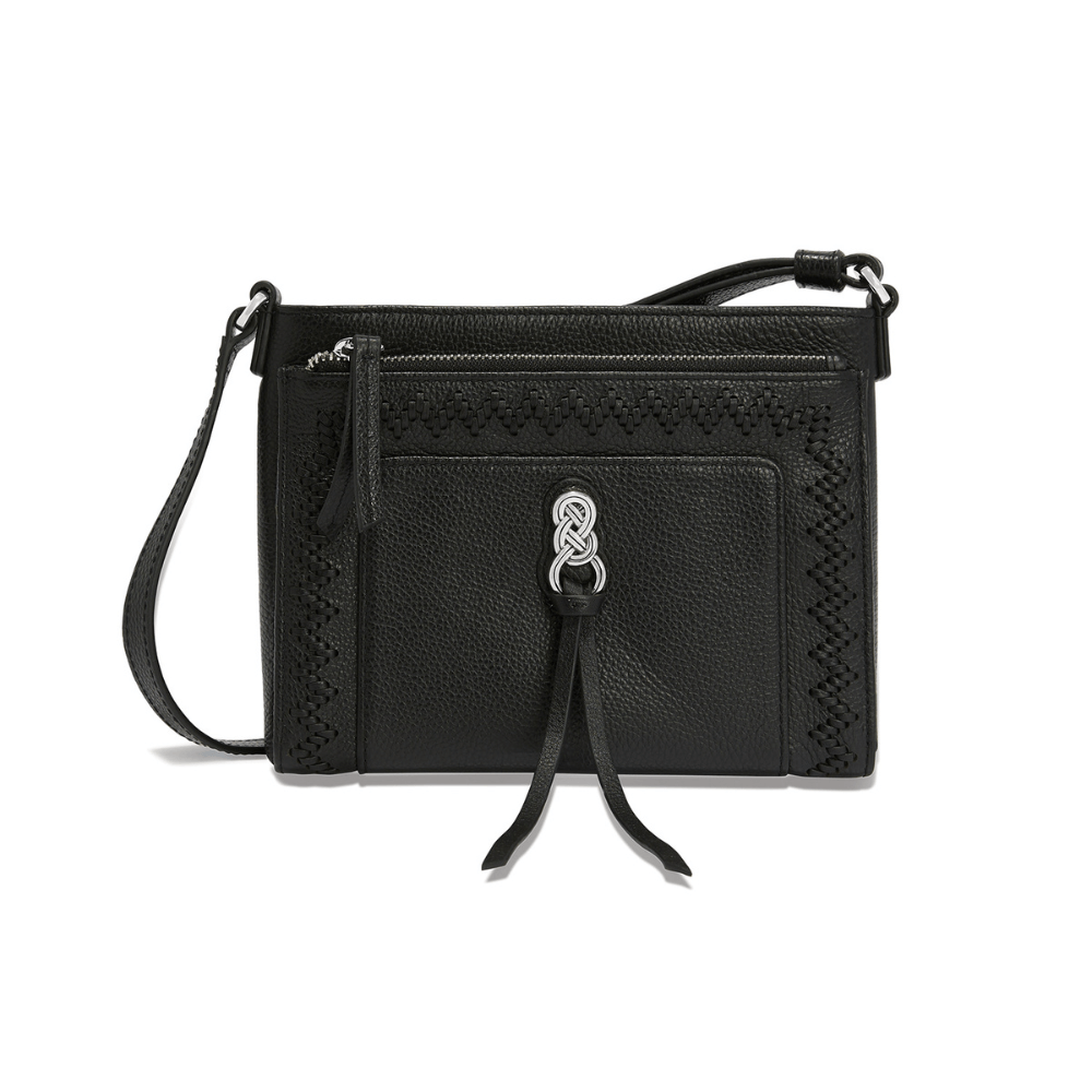 With its beautiful artisan hand-laced detailing and Celtic knot hardware, you’d never guess this fine leather bag is a truly practical organizer. It has a many-pocketed wallet built right in and a large zippered pocket for security. Collection: Interlok Color: Black Width: 8" Height: 6" Depth: 1 1/2" Weight: 1.5 lbs Strap: 14" - 26" Adjustable Top Closure: Ziptop Interior Pockets: 1 Exterior Material: Leather Interior Lining: Polyester Credit Card Slots: 6 Exterior Pockets: 1 Features: Exterior organizer pocket / ID window