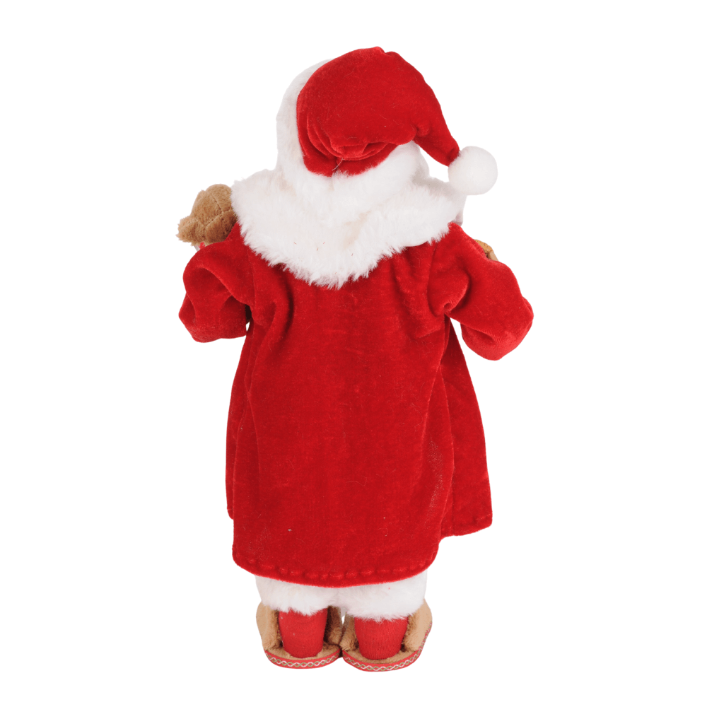 The Karen Didion Bedtime Stories Santa is great for any kitchen, shelf, and countertop. The quality is unmatched with this decorative piece’s hand-painted face, inset eyes, unique fabric, and detailed accessories. With his warm, midnight attire, adorable slippers, and original design; he's great as a gift or as a collectible item for your own family and he’s sure to add character and style to any home.