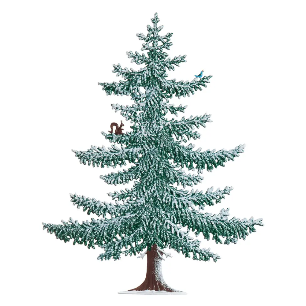 Large Winter Pine Tree with Squirrel and Bird by Wilhelm Schweizer is hand cast, hand painted, imported pewter from Bavaria in Germany. Immerse yourself in the pristine splendor of frosty forests with this enchanting sculpture depicting a picturesque winter tree full of detailed accents. A secret observer - a small squirrel - crouches beneath the dense branches, while a small bird braves the cold breeze. Ideal for collectors of nature-loving scenes, this hand-crafted piece of art brings the silence and magic of snowy landscapes straight into your home. Colors may vary from the image shown since each piece is individually hand painted. Gift box included. Dimensions: 6″W x 7 3/4″H