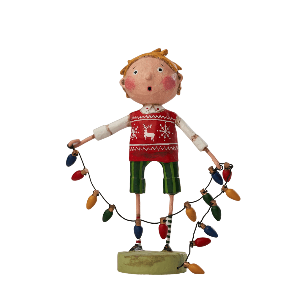 Nothing says holiday cheer like twinkling multicolored lights! This cheerful little fellow is all set to string them up and spread the Christmas spirit. Who’s ready to join in the fun?