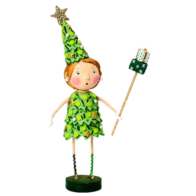 Eloise is all decked out as an evergreen tree, with the top of the tree as her holiday hat. The star tree topper is a classic holiday look, but the pearl earrings are pure Eloise! She will liven any holiday display, most especially her friends in the Lori Mitchell Christmas Collection.