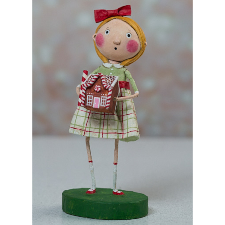 Sweet little Ginger is holding her very own gingerbread house. She is decked out in a cute red & green dress that coordinates perfectly with the rest of the new Lori Mitchell Christmas figures. Pull them all together for a festive look!
