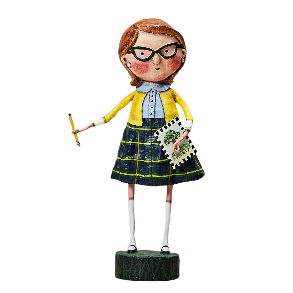 Doesn't this adorable teacher look just like one you had in school? Her yellow cardigan, and plaid skirt, brings back memories to everyone, your math teacher, english teacher, all of the teachers! Pencil in hand and the look that gains everyone's attention, Lori Mitchell's Miss Teachy is bound to be one of your favorites!