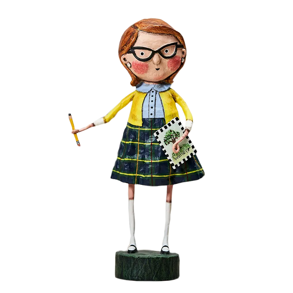 Doesn't this adorable teacher look just like one you had in school? Her yellow cardigan, and plaid skirt, brings back memories to everyone, your math teacher, english teacher, all of the teachers! Pencil in hand and the look that gains everyone's attention, Lori Mitchell's Miss Teachy is bound to be one of your favorites!