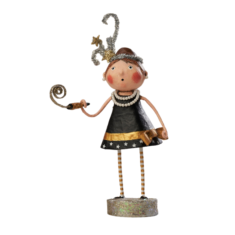 Look who’s here—the ultimate party girl! Evie dazzles in her black dress with shimmering gold accents. Elegant pearls add a touch of sophistication, while the party horn in her hand hints at her playful, carefree side.