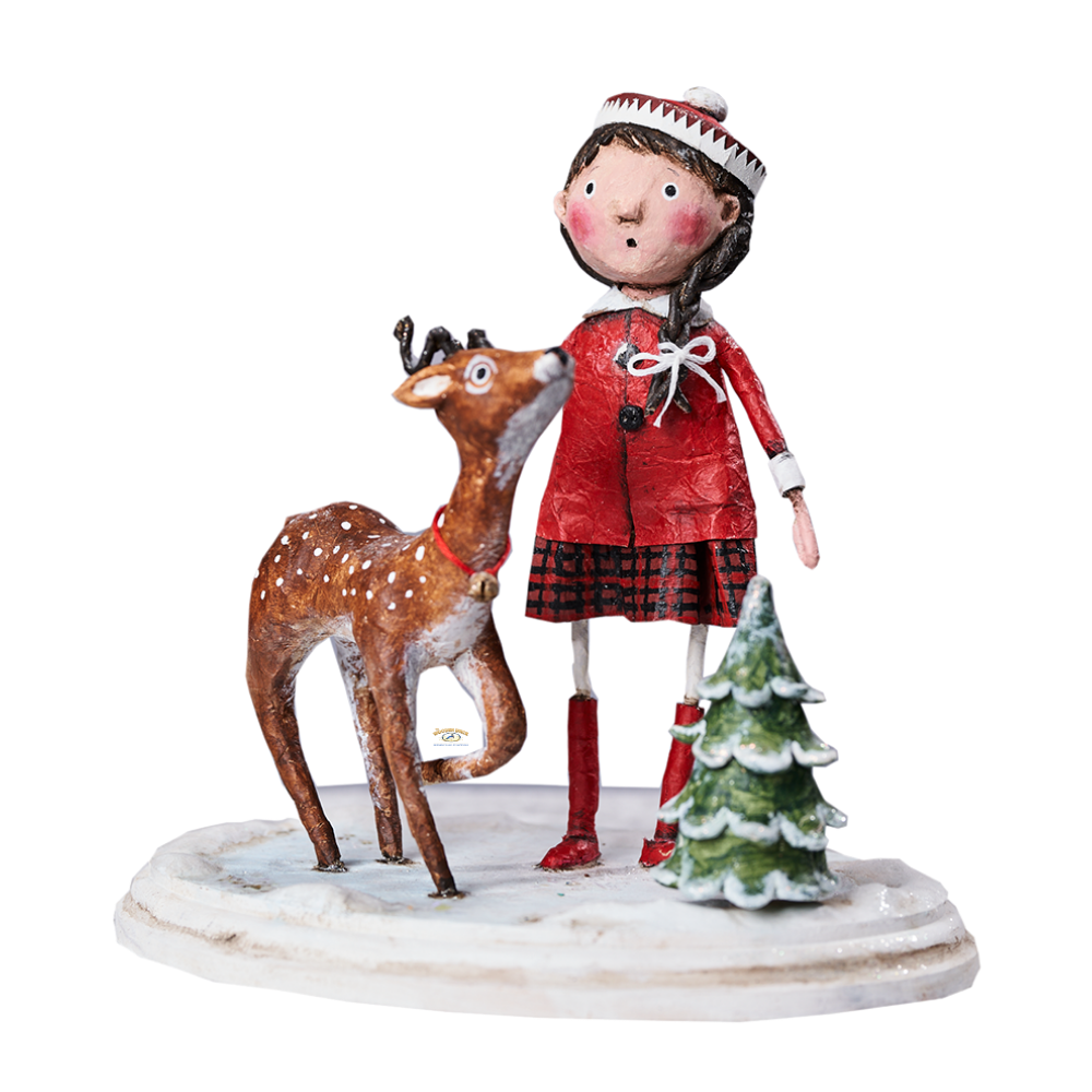 Lori Mitchell - Winter Wonderland Size: 7 Inches each With her woodland friends waiting in the forest, this little lady heads off to greet them. All dressed up in her bright red boots, plaid skirt and tam to match, she's excited to head off. Lori Mitchell's Winter Wonderland is an amazing piece that showcases wintertime, and the friends you meet along the way!