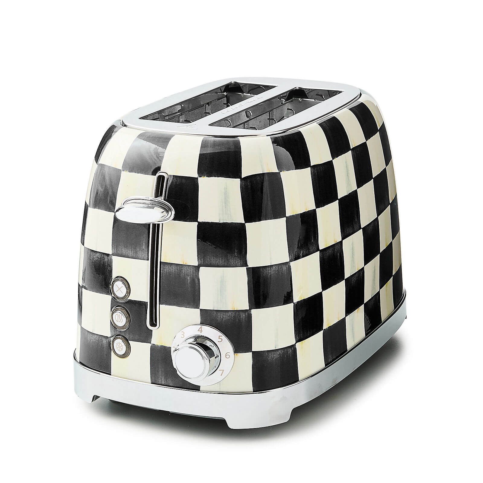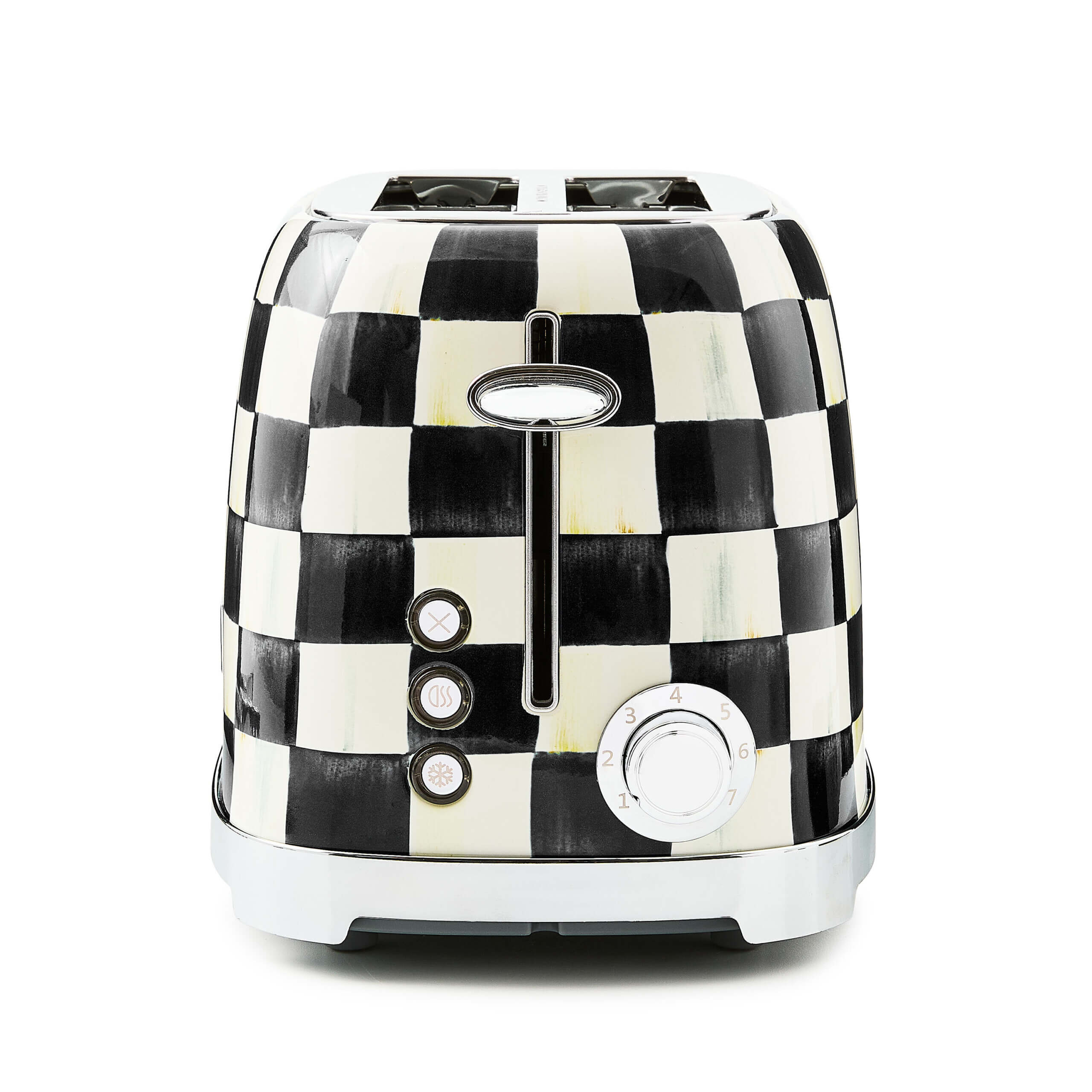 Let's have a toast to appliances that are anything but ordinary with this Courtly Check 2-Slice Toaster! Designed to bring color, pattern, and fun to your kitchen, this stainless steel toaster features our most iconic check pattern, making it the perfect addition to your MacKenzie-Childs collection. Pair it with more pieces from the Courtly Check collection, or mix and match with our other beloved patterns to create a kitchen that brightens the everyday.