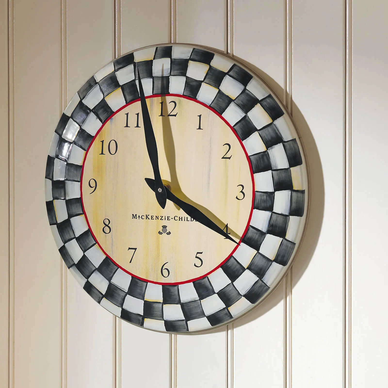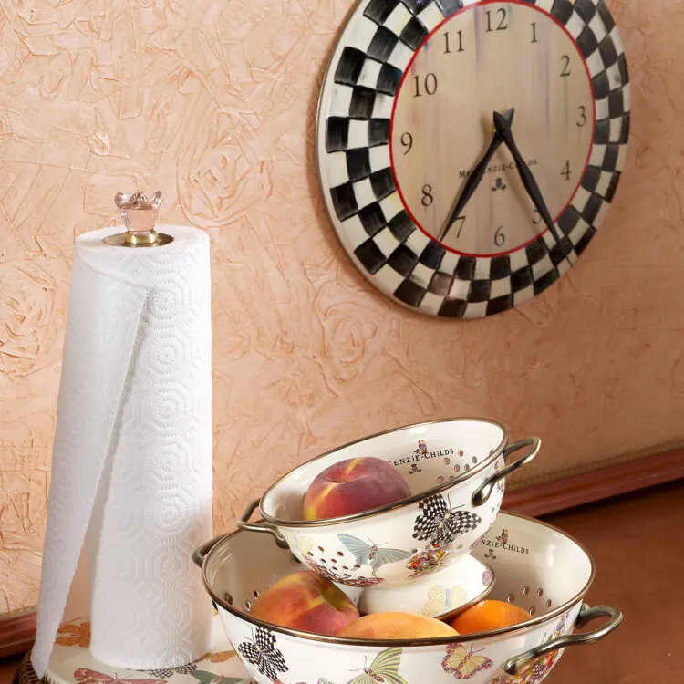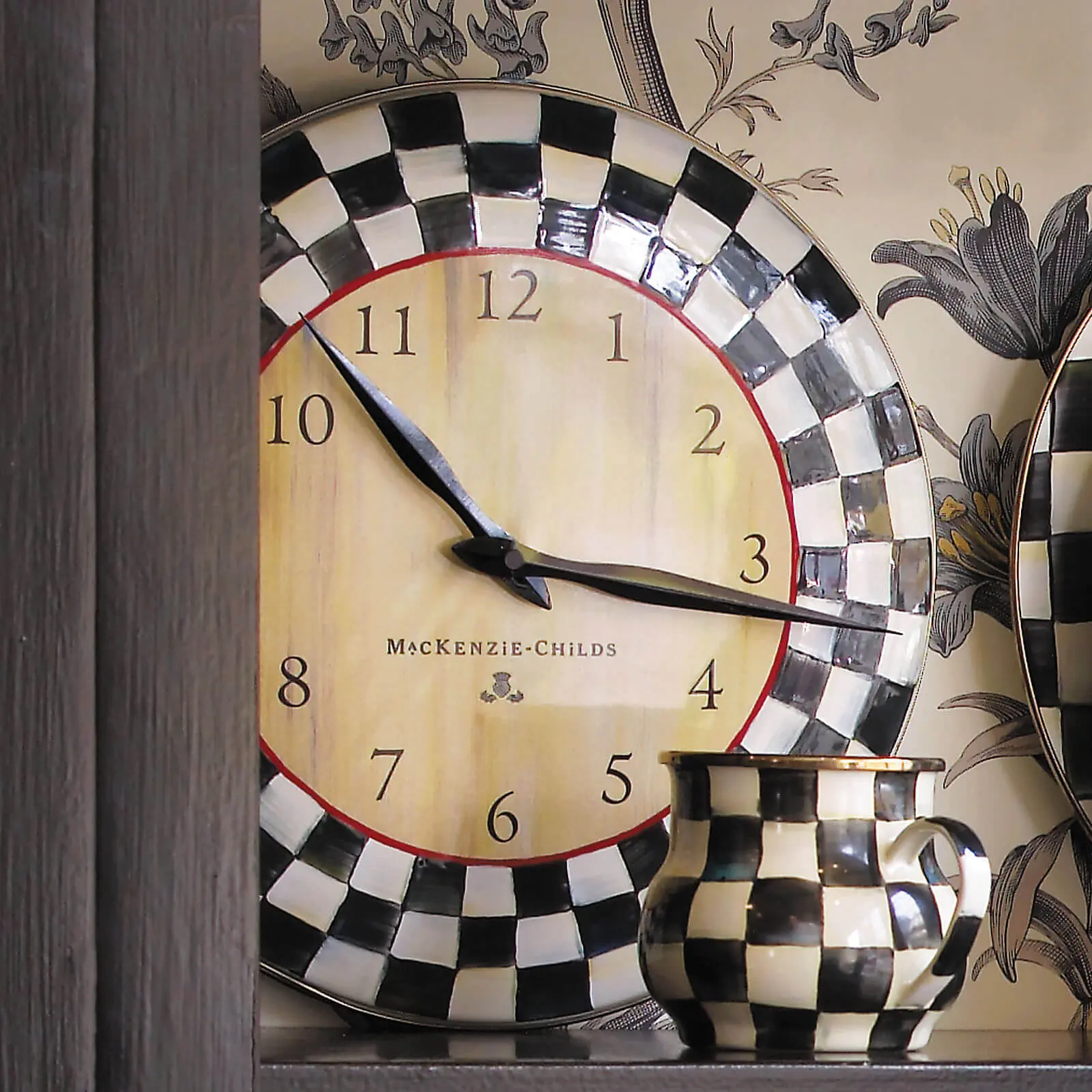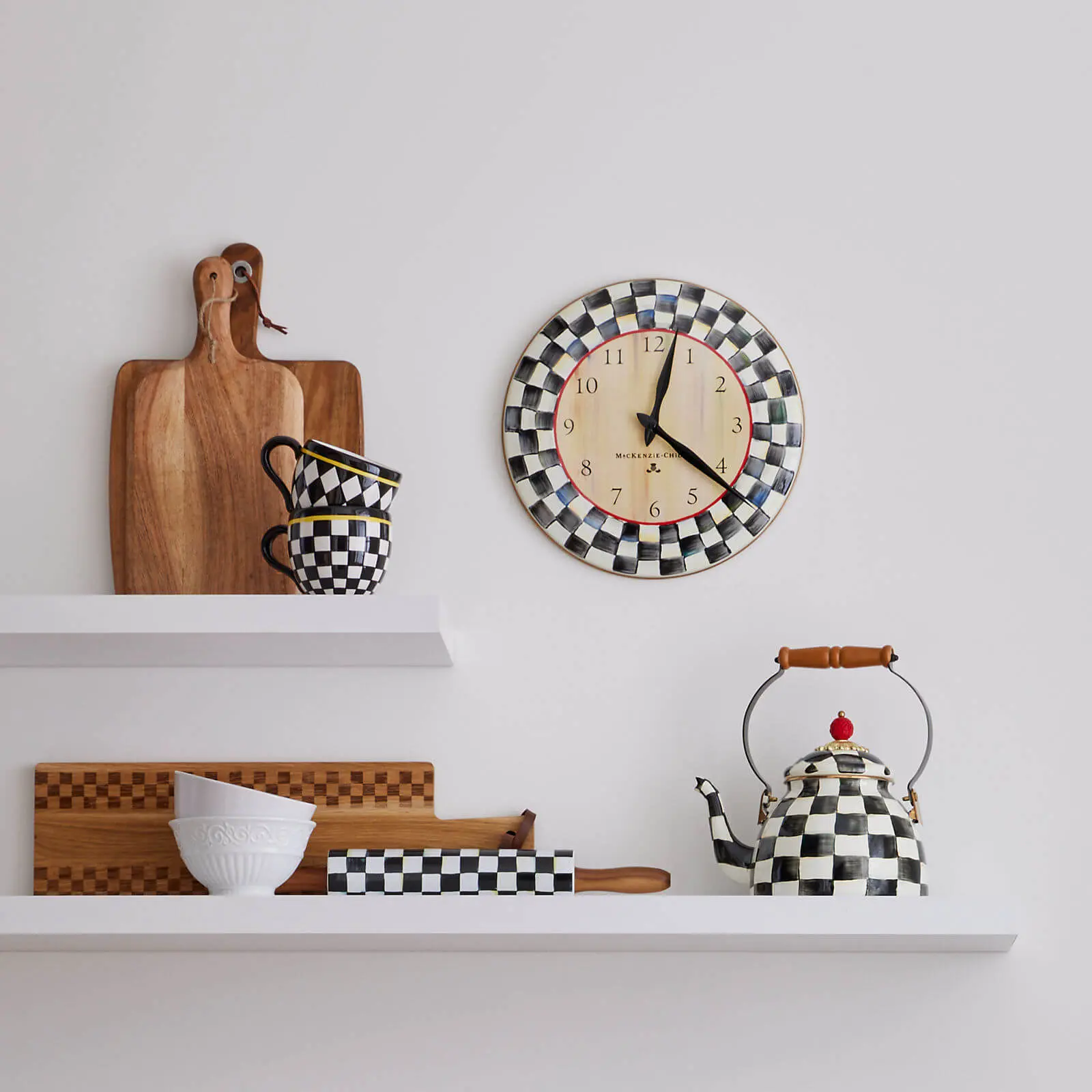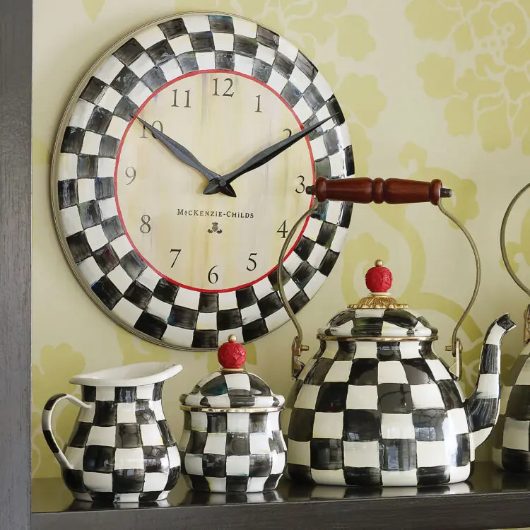 Sync your schedules to MacKenzie-Childs time. Equally striking with sleek stainless steel or warm wood cabinets, our Courtly Check Enamel Wall Clock is the perfect timekeeper in any room. Add a splash of style to your kitchen or a punch of personality to your boardroom. Consider it a compliment if your guests keep checking the time—it’s tough to take your eyes off of this charming clock. With a subtle jewel-tone palette woven by an artisan’s brush through the glossy, hand-painted, high-contrast checks, we’ve yet to find a room that doesn’t look good with Courtly Check.