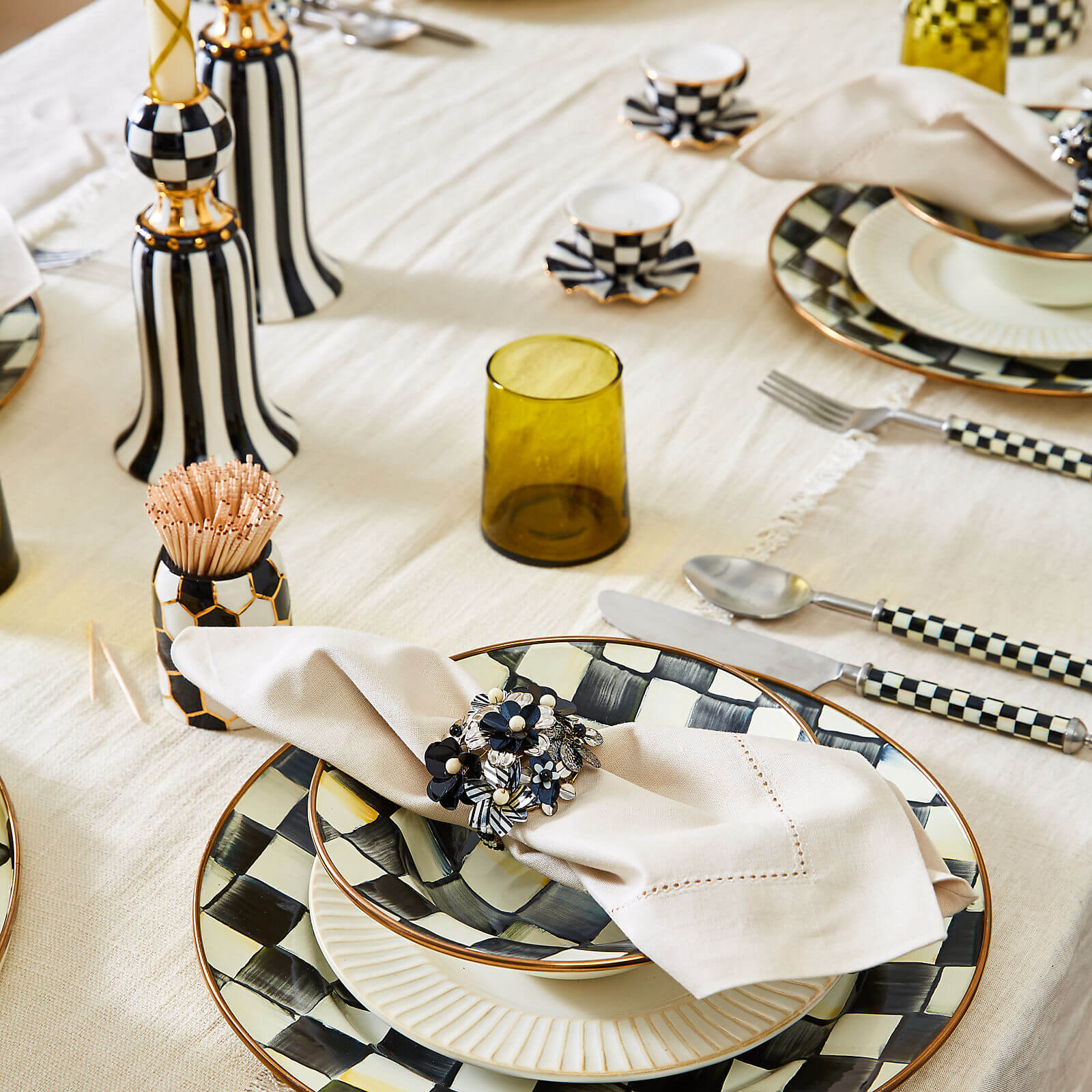 Sure to make your table fresh and fun, the hand-painted ceramic Courtly Teacup Salt & Pepper Set pays homage to our classic ceramic Courtly Check teacup and saucer. Presented in a beautiful gift box, it makes an ideal gift for the salt and pepper shaker collector, who might also happen to be your favorite host.