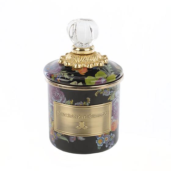 Add to the endless possibilities for our enamel canisters with the Mini Black Flower Market Canister. Our smallest sized canister, the Mini stands handsomely alone or harmonizes delightfully in a set. Keep it in the kitchen or invent new uses around the house. It’s perfect for cotton balls and swabs in the bathroom, pens and pencils in the office, or knickknacks and doodads in the kids’ room. Color glazed in black, it’s decorated with hand-applied fanciful botanical transfers that recall a lush English garden in the peak of summer, and the lid is topped with a clear glass knob.