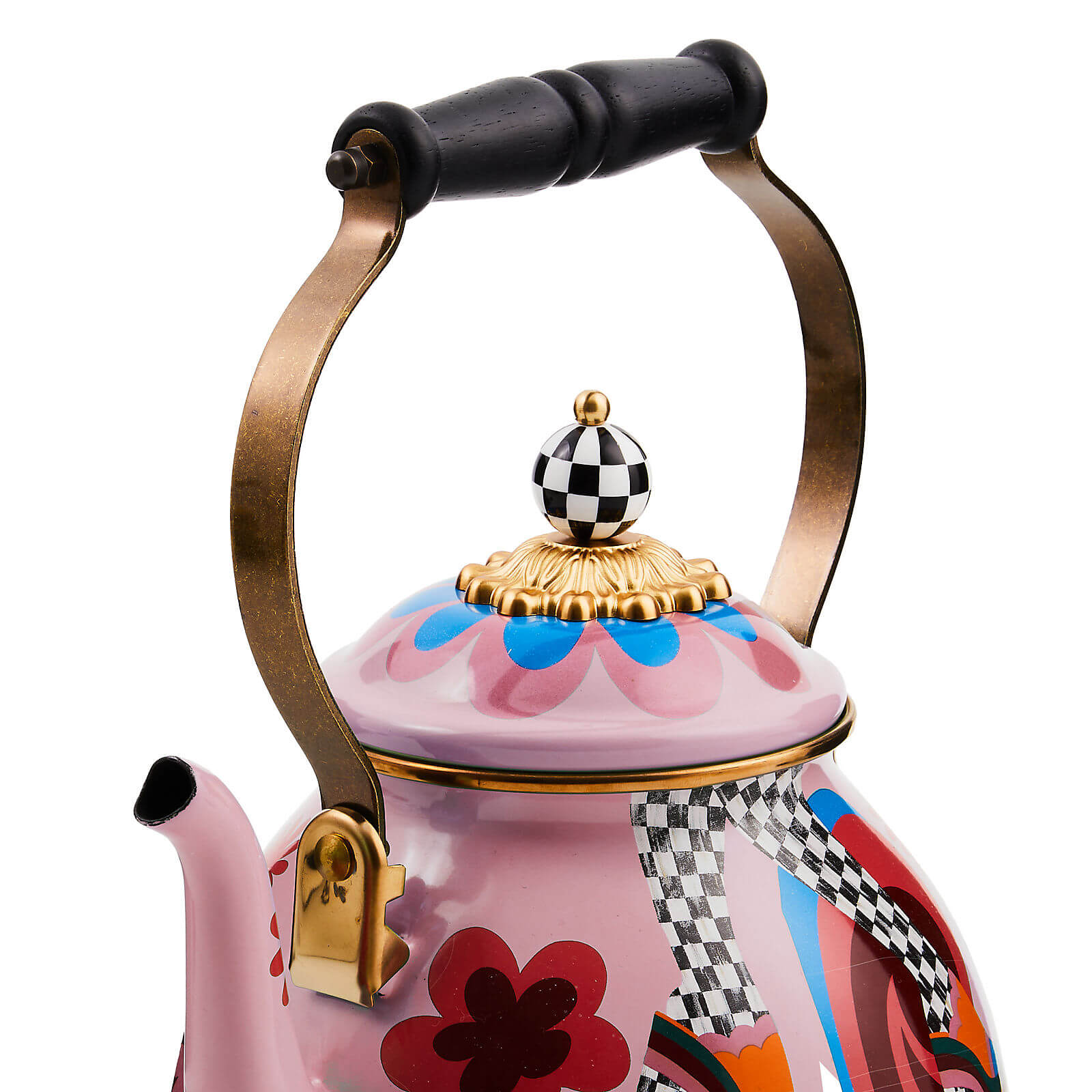 Suit your personali-tea with The Tea Kettle Collective. Strut your retro fashion flair with the Go Go 2 Quart Tea Kettle. It features bold and bright graphics from artist Bijou Karman on a heavy-gauge steel underbody, finished with a wood handle and a black and white check knob on the lid. Each special-edition Collective kettle makes a great cup of tea, of course, and adds MacKenzie-Childs style to your stovetop. Don’t be surprised that you need more than one.