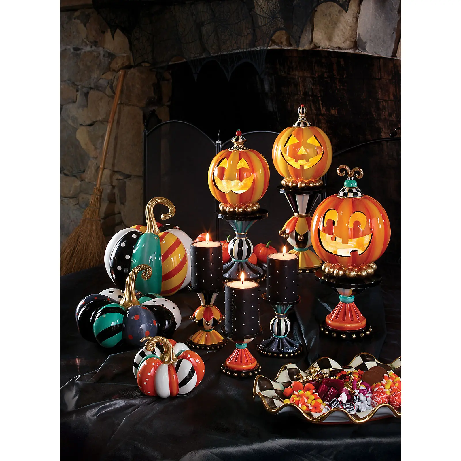 Take your pick from our most unusual pumpkin patch. The Mini Patchwork Spice Pumpkin is a medley of solids and patterns in orange, sage, ivory, and black. Adding a touch of glitz is a twisted golden stem, making this gorgeous gourd a seasonal staple right through Thanksgiving.