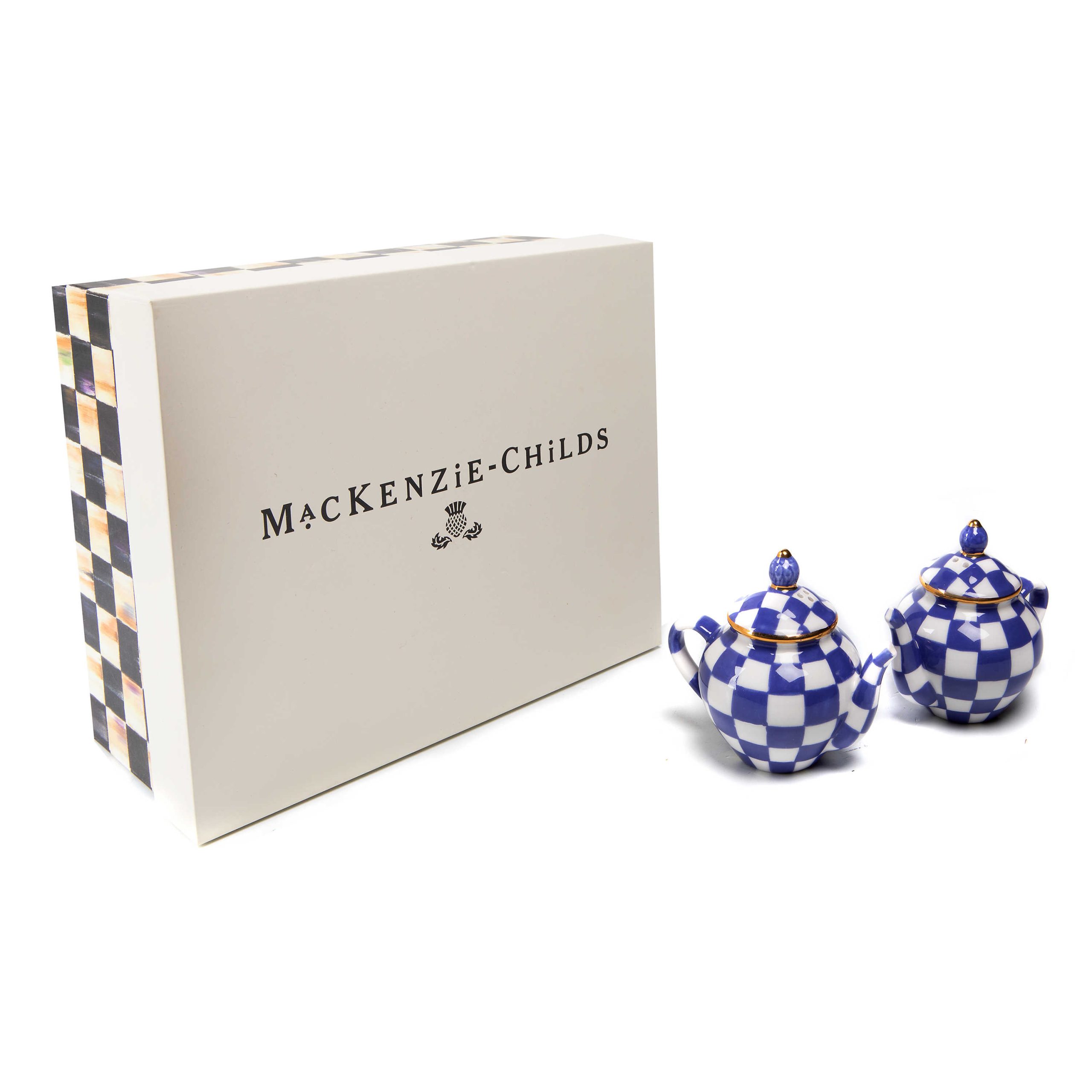 Sure to make any table merry, the hand-painted ceramic Royal Check Teapot Salt & Pepper Set features a pair of blue and white check teapots that hold salt and pepper. Presented in a beautiful gift box, it makes an ideal gift for the salt and pepper shaker collector, who might also happen to be your favorite hostess.