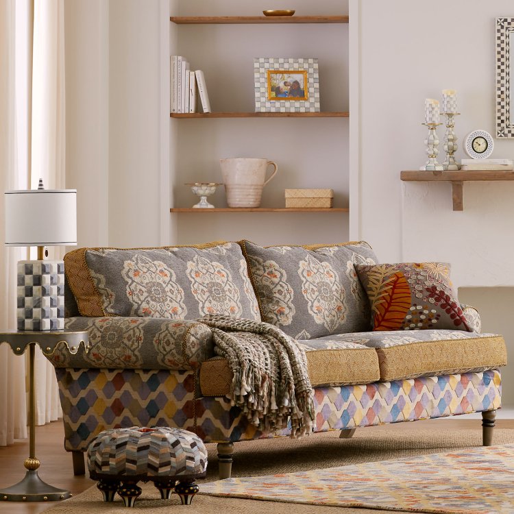Heavy-gauge, hand-glazed steel underbody with hand-painted Sterling Checks. Glass pane. Easel back included; backing is covered with linen and a brass logo plate. Pieces may vary due to the handmade nature of each product. Imported.