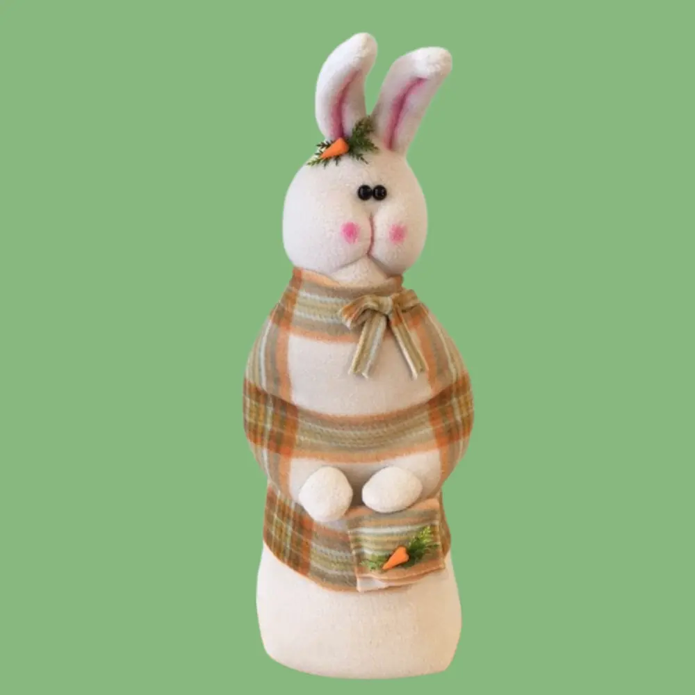 Memories of Elaine - Plaid Patty Carrie sports a beautiful plaid scarf with her soft gold cable knit sweater, just the right look to for a morning of carrot and flower picking. Dimensions: 19" tall x 7" wide x 6 " deep