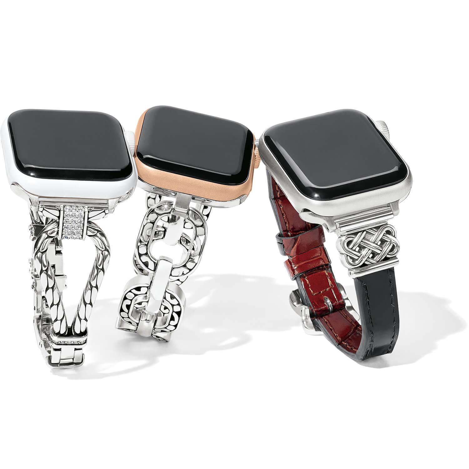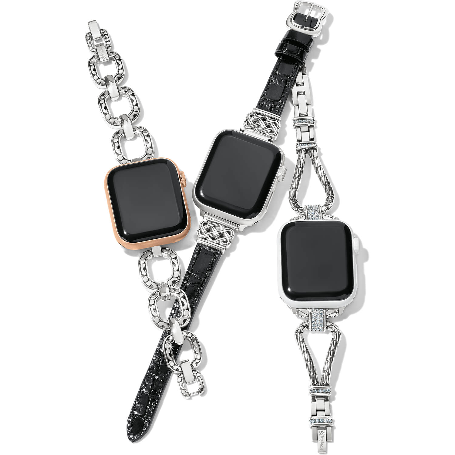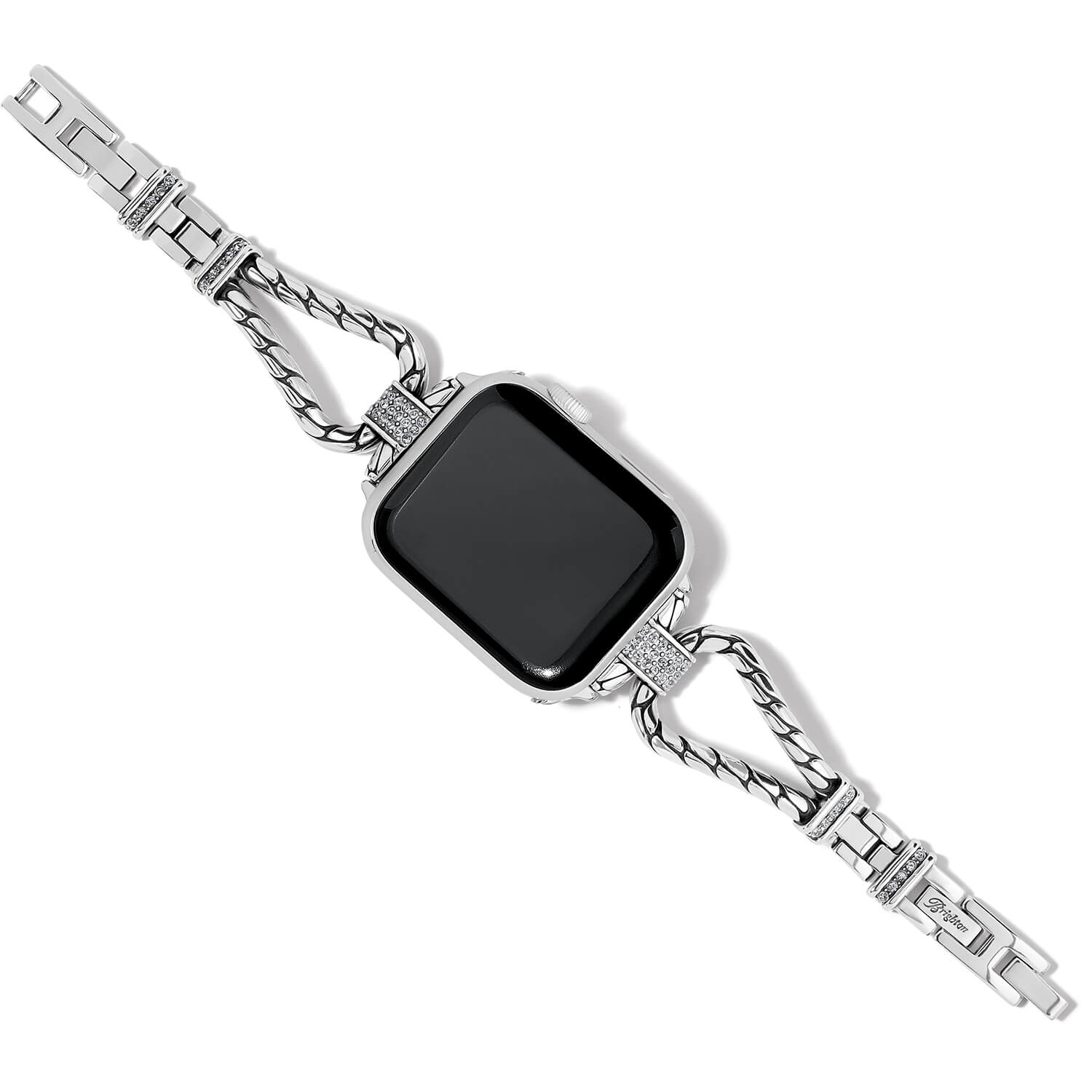 Give your Apple Watch a fashion upgrade with our Meridian Smart Watch Band. With its pave-crystal accented barrels and rope motif, this stylish matcher to our Meridian Collection offers two fold-over clasp extenders for adjustability, and fits 38 mm case size and larger. Collection: Meridian Color: Silver Closure: Fold-over clasp Removable Links: Yes Material: Fine Quality Crystals Finish: Silver plated Features: Fits 38mm and larger watch case sizes. Watch face sold separately.