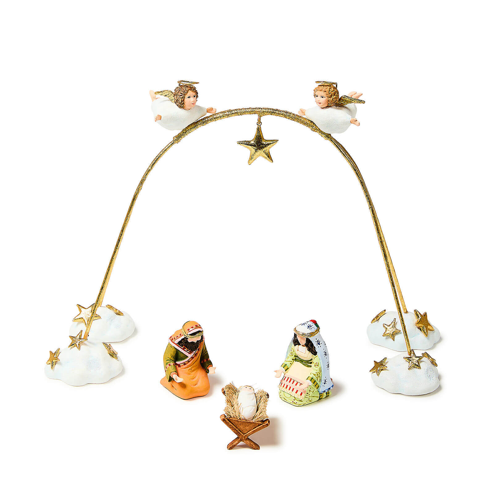 Bring home a piece of handcrafted holiday magic with the Patience Brewster Nativity Cherub Angels Mini Arch Set. Features the nativity with whimsical Patience Brewster details, like metallic stars and cherubic angels flying overhead. Finely crafted and filled with personality, every Patience Brewster piece is perfect for gifting or building your unique collection.