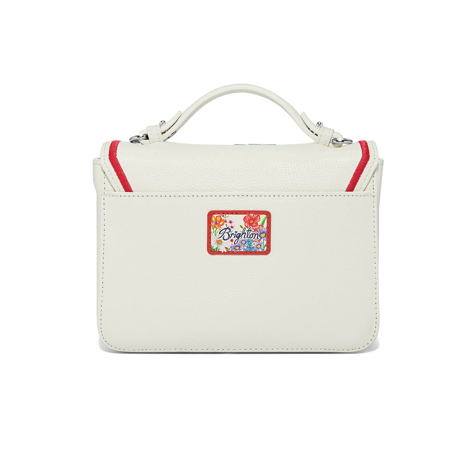 This bag incorporates embroidery and laser techniques for a unique lace-like look. You will find Australian flower motifs that are embroidered onto a leather panel that was first layered. The laser creates openings white 44,000 stitches of embroidery fills in with the floral pattern, creating a lace-like effect. Bottom reads, be like a wildflower beautiful and free. Collection: Sydney Color: White-Multi Top Closure: Flap w/magnetic snap Interior Pockets: 3 Exterior Material: Leather Interior Lining: Polyester Exterior Pockets: 1