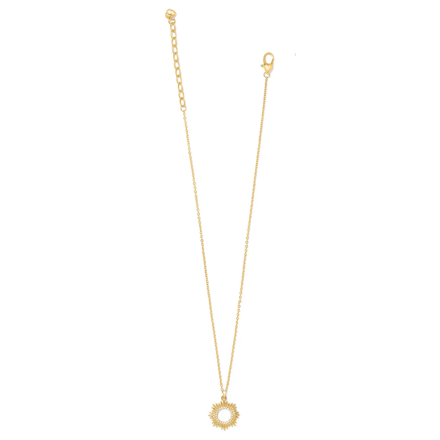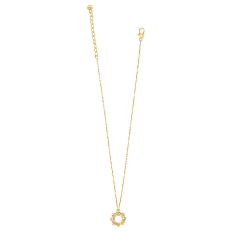 The Solara Collection was inspired by the Sun King who was also known as Louis the Great king of France (Louis XIV) who ruled France for 72 years (1643-1715). He took the symbol of Apollo the god of sun and light as his personal emblem and adorned the ornate golden gates at the Palace of Versailles with this symbol. It has been given a clean modern and sophisticated aesthetic in this petite necklace.